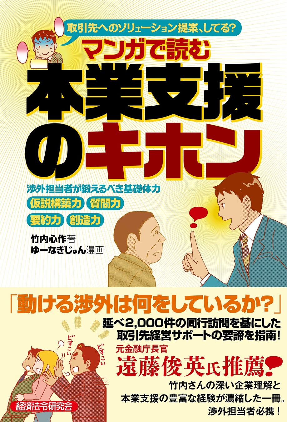 金融機関の渉外担当者が、取引先の経営課題を正しく捉える方法と、解決に導くソリューション提案を楽しく身につける実務書。担当者の日ごろの業務をイメージしやすくするため、コミカルなマンガで取引先とのやり取りをストーリー化し、本業支援力を高めるポイントを解説しています。