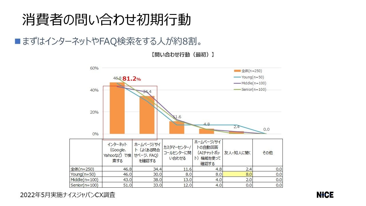 ■問い合わせの初動として、まずはインターネットやFAQ検索をする人が約8割