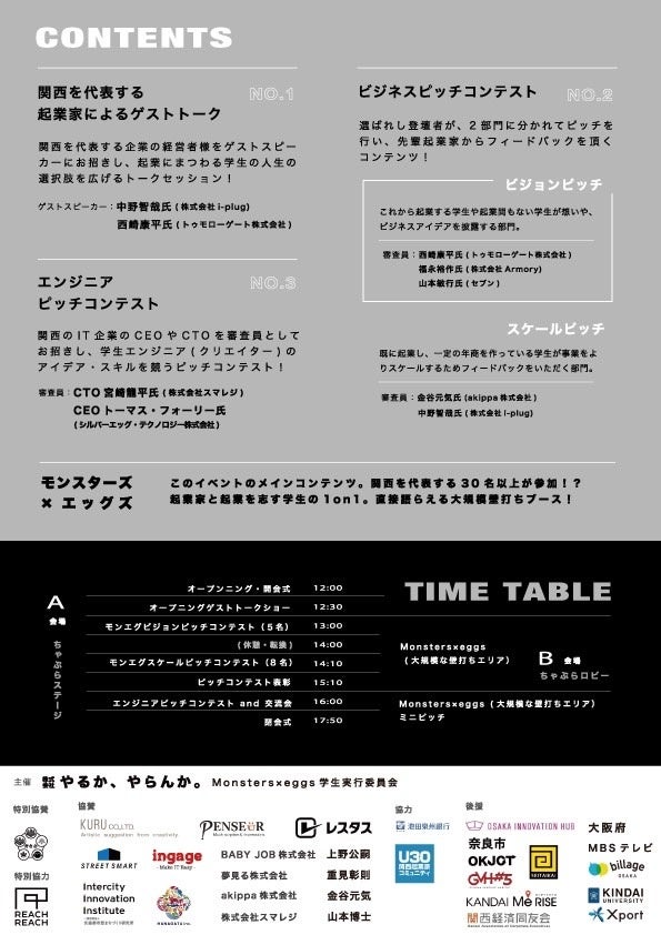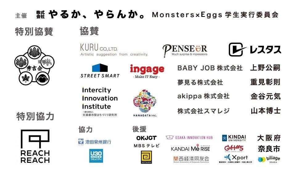 【後援】MBS毎日放送/近畿大学/大阪イノベーションハブ/関西経済同友会/Xport(構成団体:大阪商工会議所、大阪工業大学)/GVH#5/関西大学梅田キャンパス/OKJCT/ビレッジ大阪/大阪府/奈良市