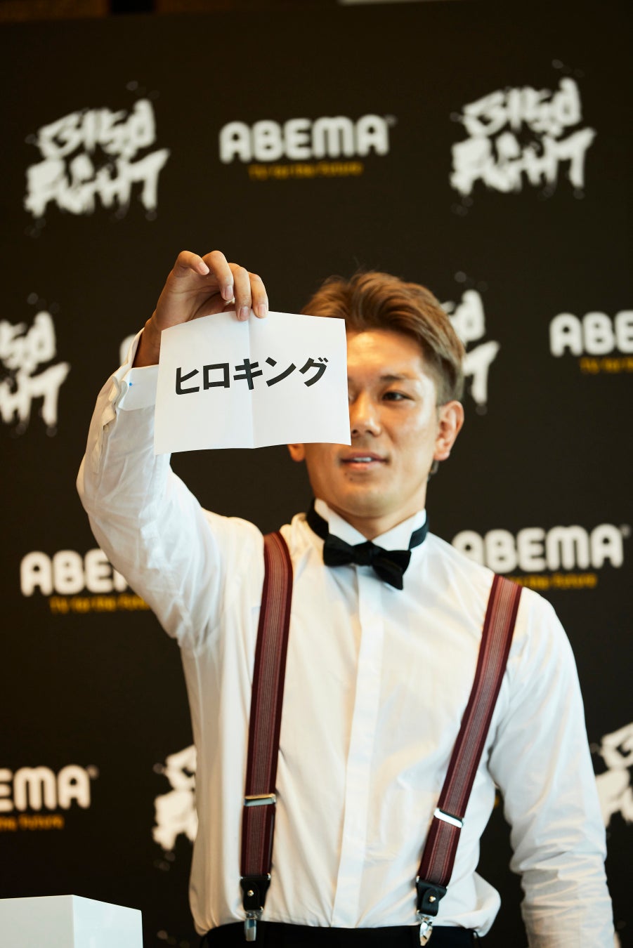 皇治が堂々と引いた封筒の中には、ヒロキングの文字が。皇治が露骨に嫌な顔をし「最悪ですよ!!!」と挑発し、ヒロキングが「さっきから黙って聞いていたら口が立ち過ぎているんで、腹立っています。ここまで言われたら黙っていられないので、口ばっかりの世界チャンピオンを倒してやりたい!」と(ボクシング初心者の意味で)初心者マークを叩きつけて煽り、「試合でモテてしゃーない!って言えないようにしてやろうと思います」追い討ちをかけると、「試合に勝って“モテてしゃーない”所以を見せつてやる。」と挑発合戦が勃発しました。