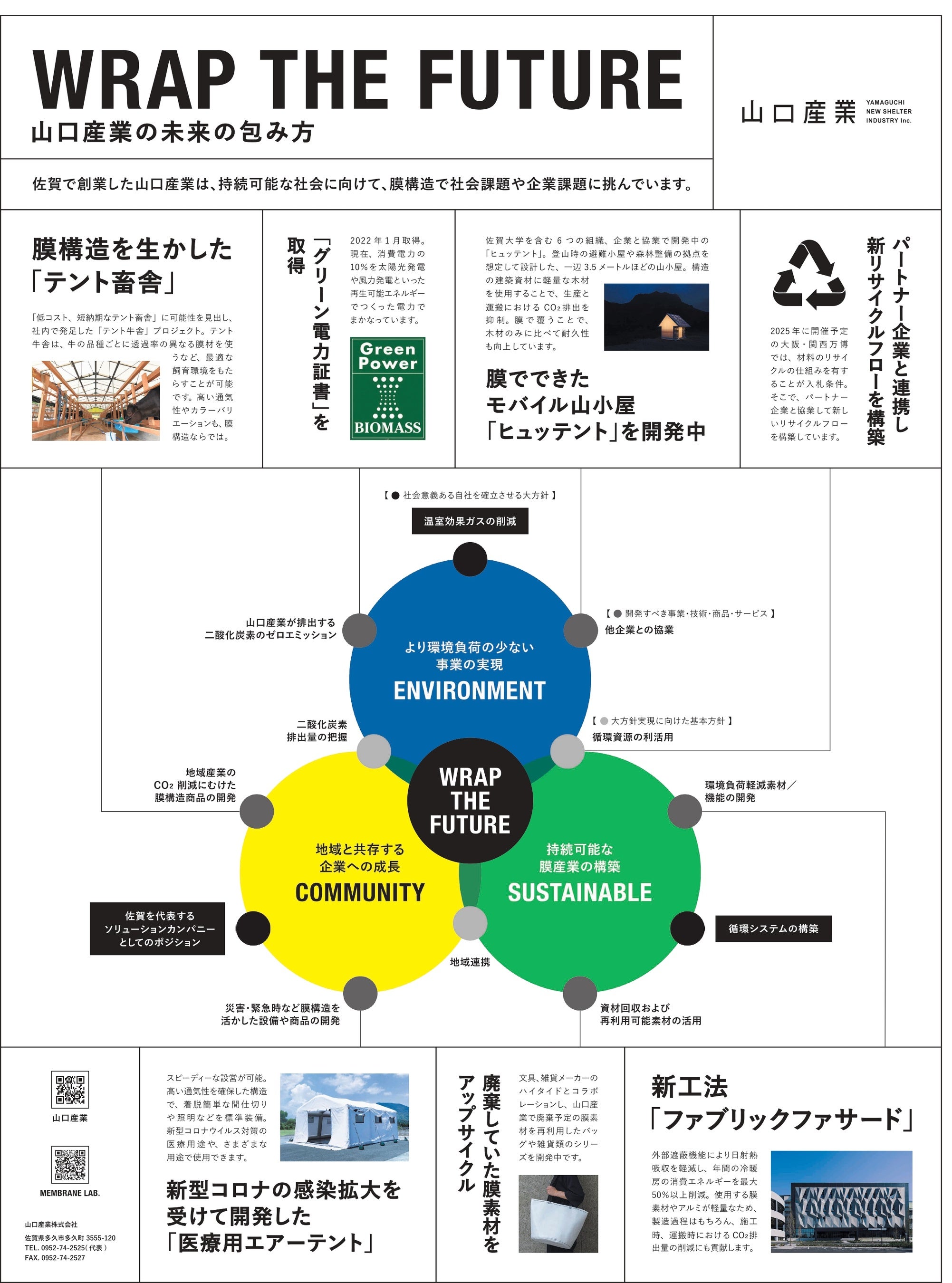佐賀で創業した山口産業は、持続可能な社会に向けて、膜構造で社会課題や地域課題に挑んでいます。