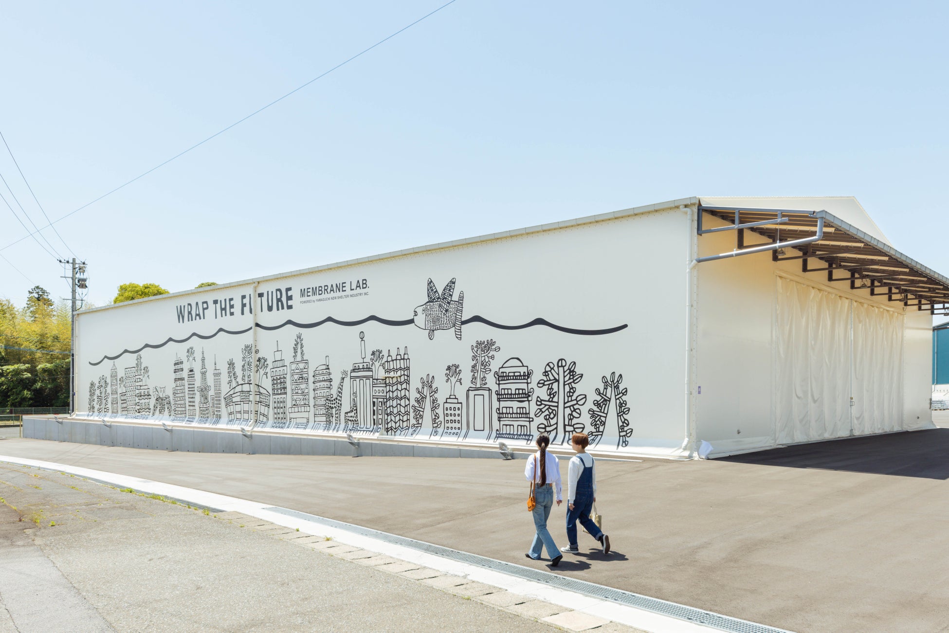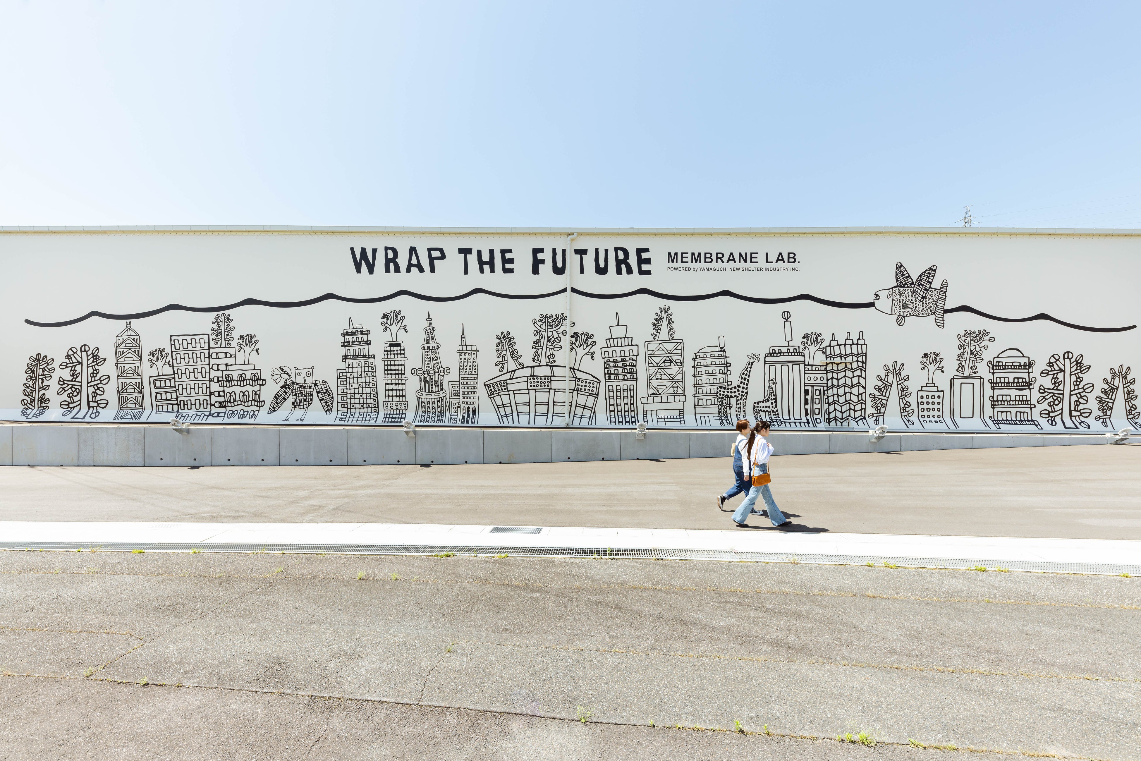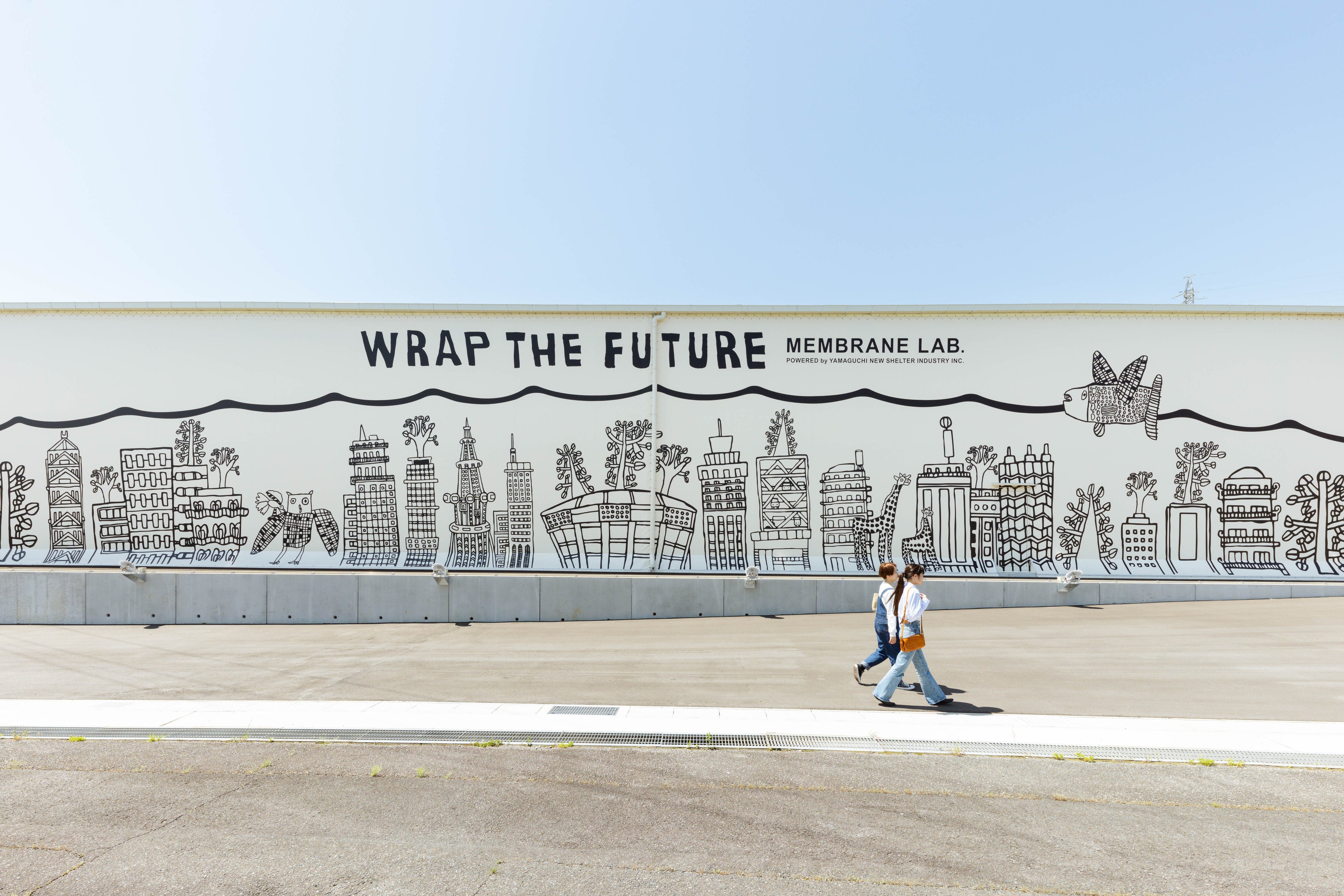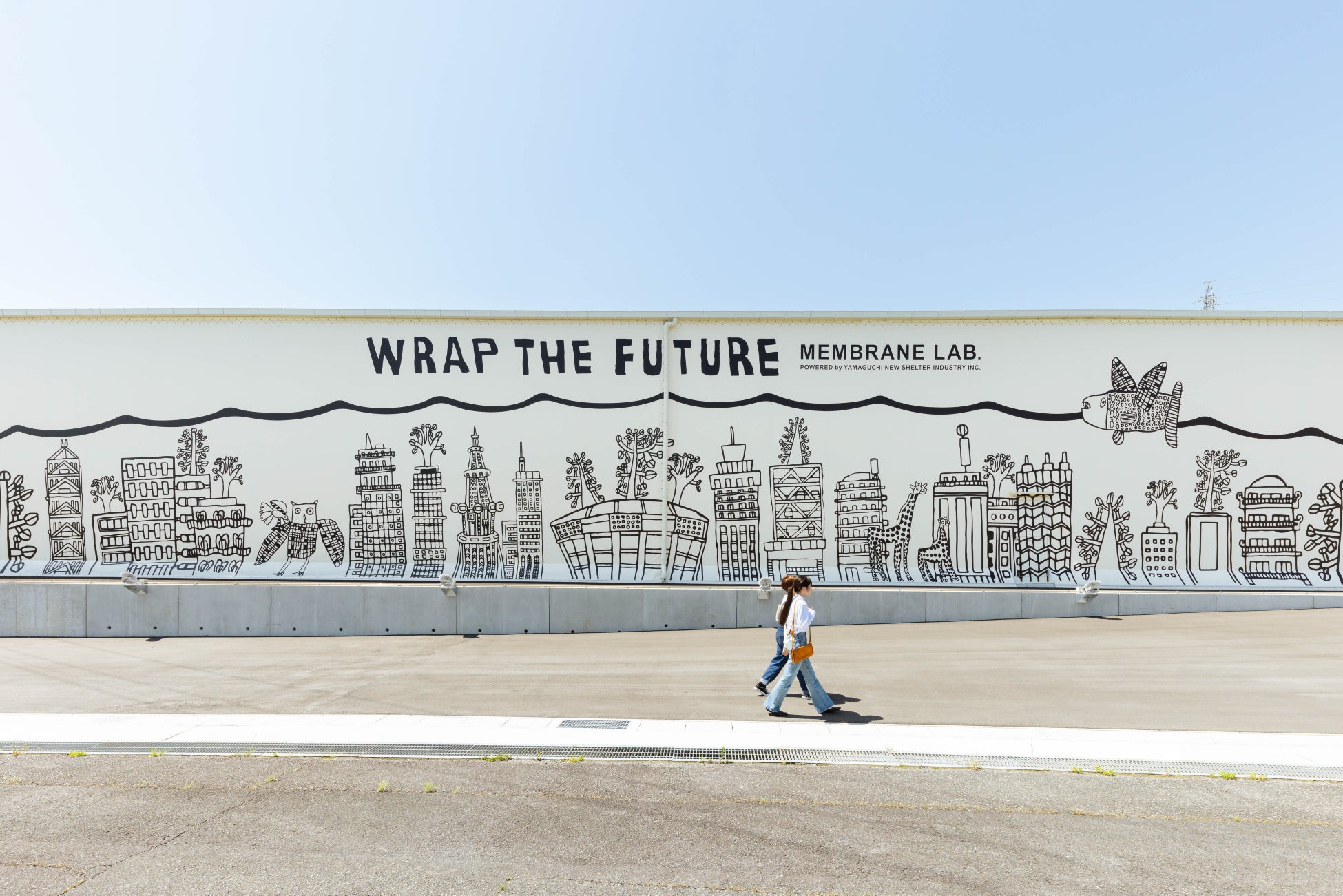 壁面アートのテーマは『Wrap the Future』。山口産業が推進する社会課題解決プロジェクト【MEMBRANE LAB.】で掲げる『膜で未来を包み、世界を守り、人々と共に進んでいく。』という新たなVisionを表現しました。