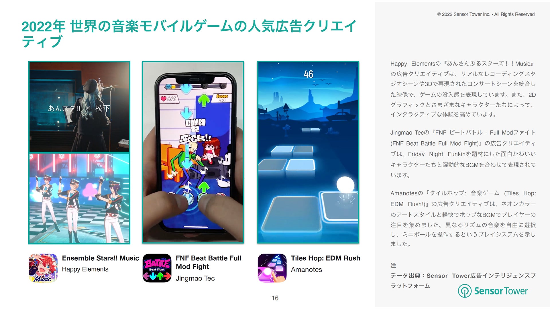 2022年 世界の音楽モバイルゲームと2Dモバイルゲームの人気広告クリエイティブ