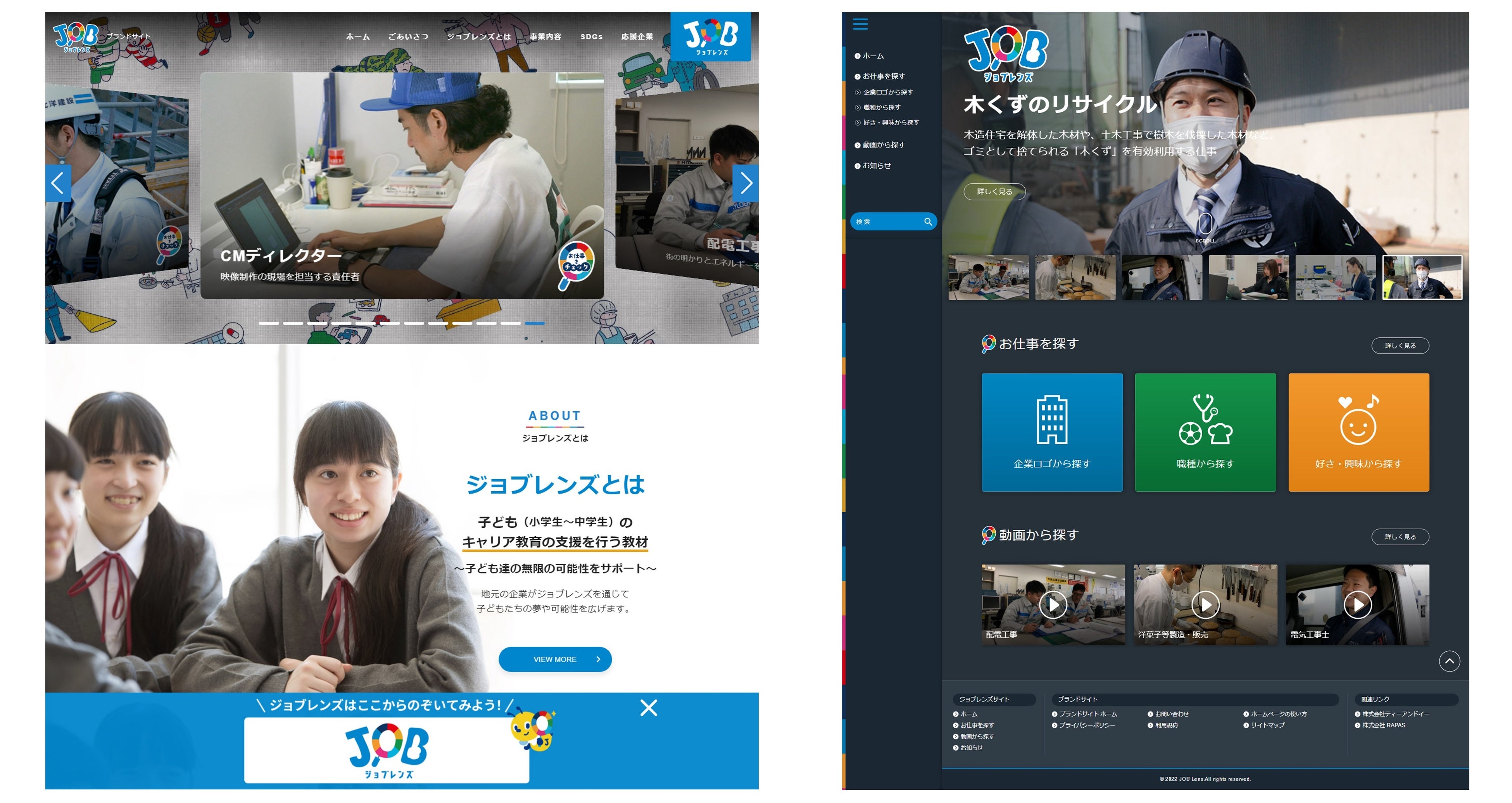 このたび立ち上げた「ジョブレンズ」は、様々な職業を映像化し、キャリア教育の教材をオンライン化しています。特にこだわっている点は、単なる職業紹介映像でなく、地域を支えているリアルな企業や職業人が登場しているところです。自分が住んでいる地域に、こんな仕事があるんだ、こんな人たちが支えてくれているんだと、生まれ育った地域に誇りを持ち、子どもたちが明るい夢を描けるお手伝いがしたいのです。
