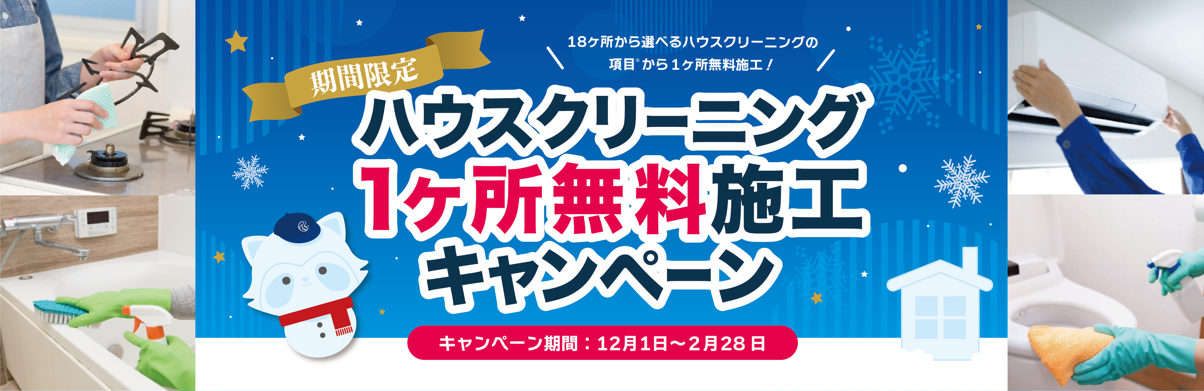そこで、1月4日から2月28日までに施工のご予約をいただきますと、「18カ所から選べるハウスクリーニング」の項目を1か所無料にいたします。