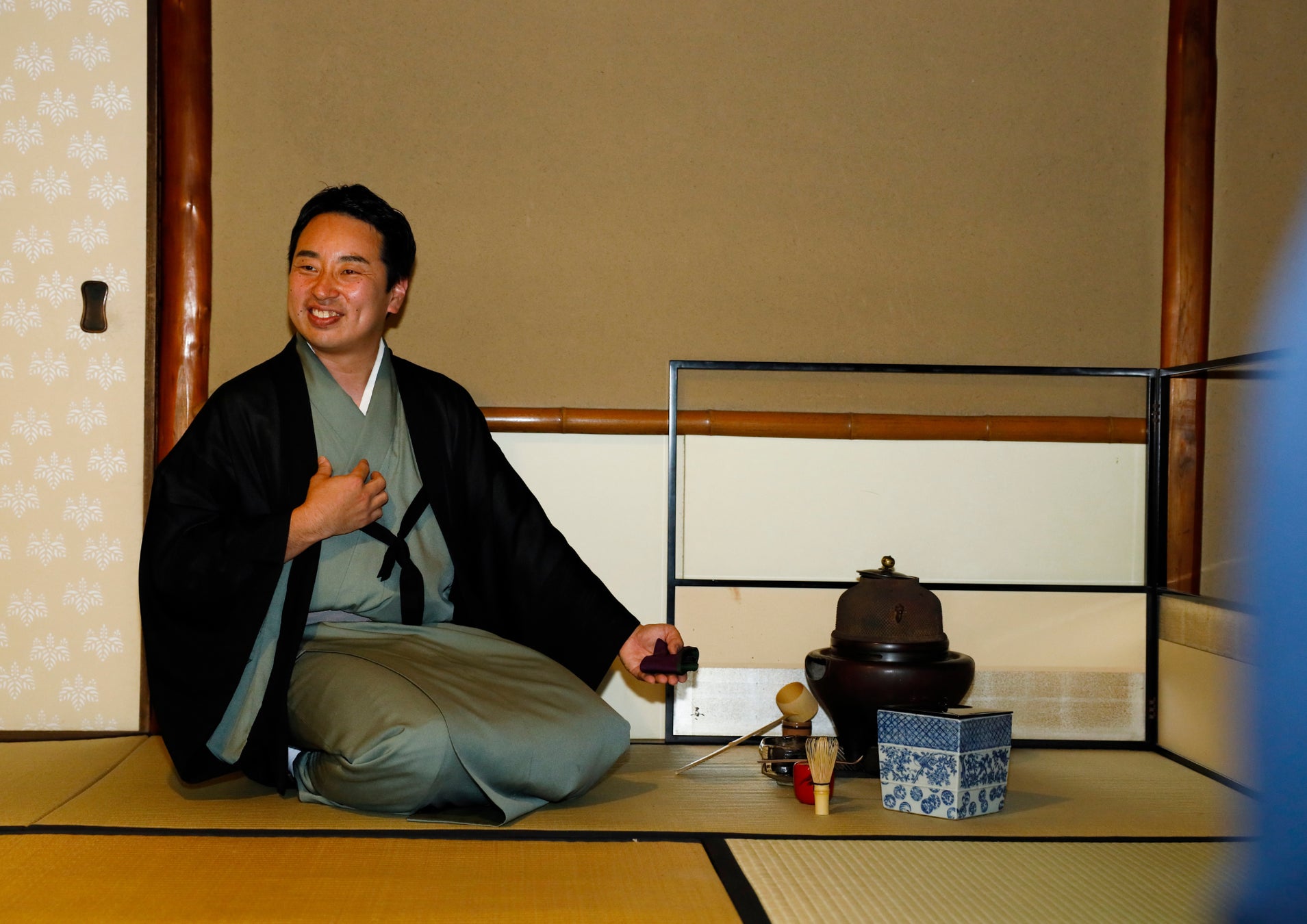 速水宗燕氏は、江戸時代中後期に茶人・速水宗達によって創始された茶道速水流の八代目家元です。1/KYOTOのツアーでは、速水氏が茶道の「清寂」な世界へと参加者を導き、お茶を介して人と人とが心を結び、絆を深める時間をお届けします。形式的にお茶の作法を真似るのではなく、起源や本質に触れていく中で、京都だけでなく、自身と清く向き合う機会をお届けします。