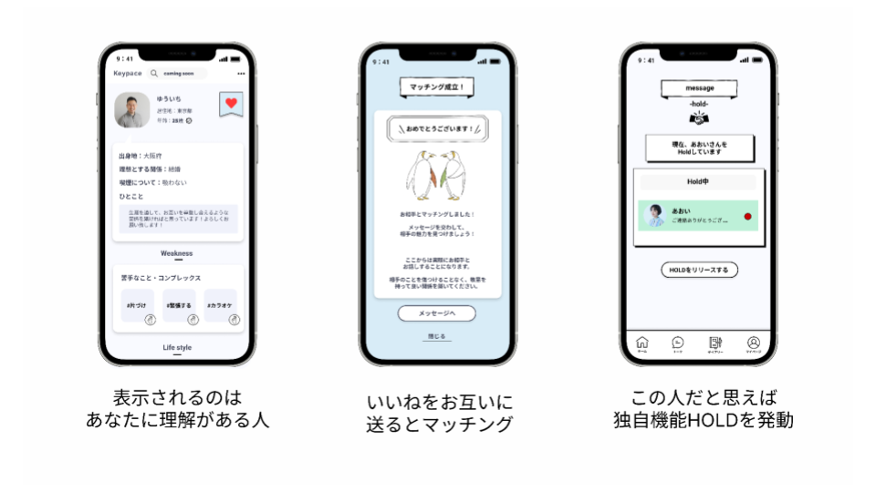 改めてKeypaceが目指しているマッチングアプリをご紹介させていただきます。つのキーワードがあります。