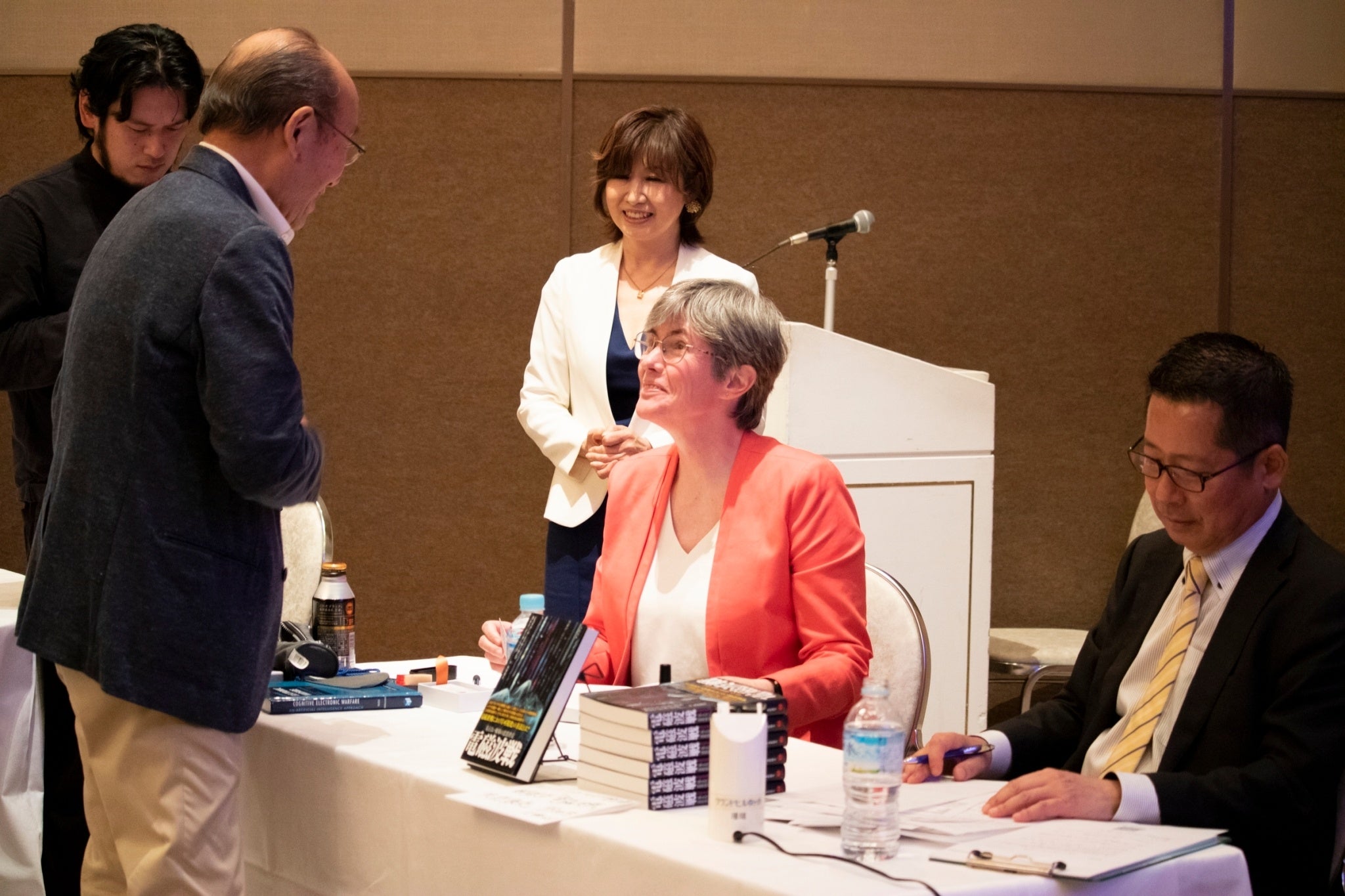 講演の後には、参加者たちとの歓談が行われ、情報交換の場として大変有意義な時間となりました。また、電磁波戦の先行販売も行われ、ヘイグ博士のサイン会も行われました。