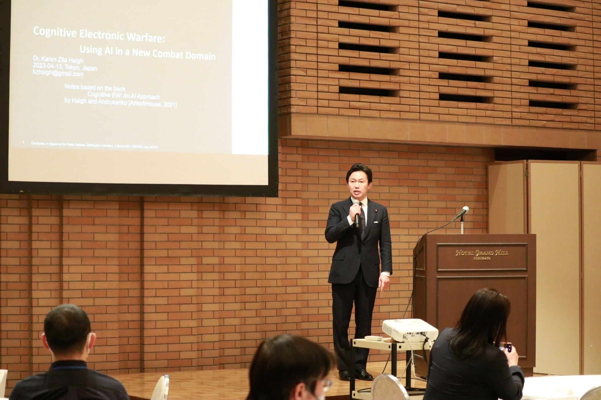 本講演会では、ヘイグ博士の著書「Cognitive Electronic Warfare: An Artificial Intelligence Approach」の日本語訳版「電磁波戦」の発売を記念して、電磁波戦に関する最新の技術と革新的なアプローチについて語られました。多数の関係者が集まり、電子戦の第一人者から直接学ぶ貴重な機会となりました。