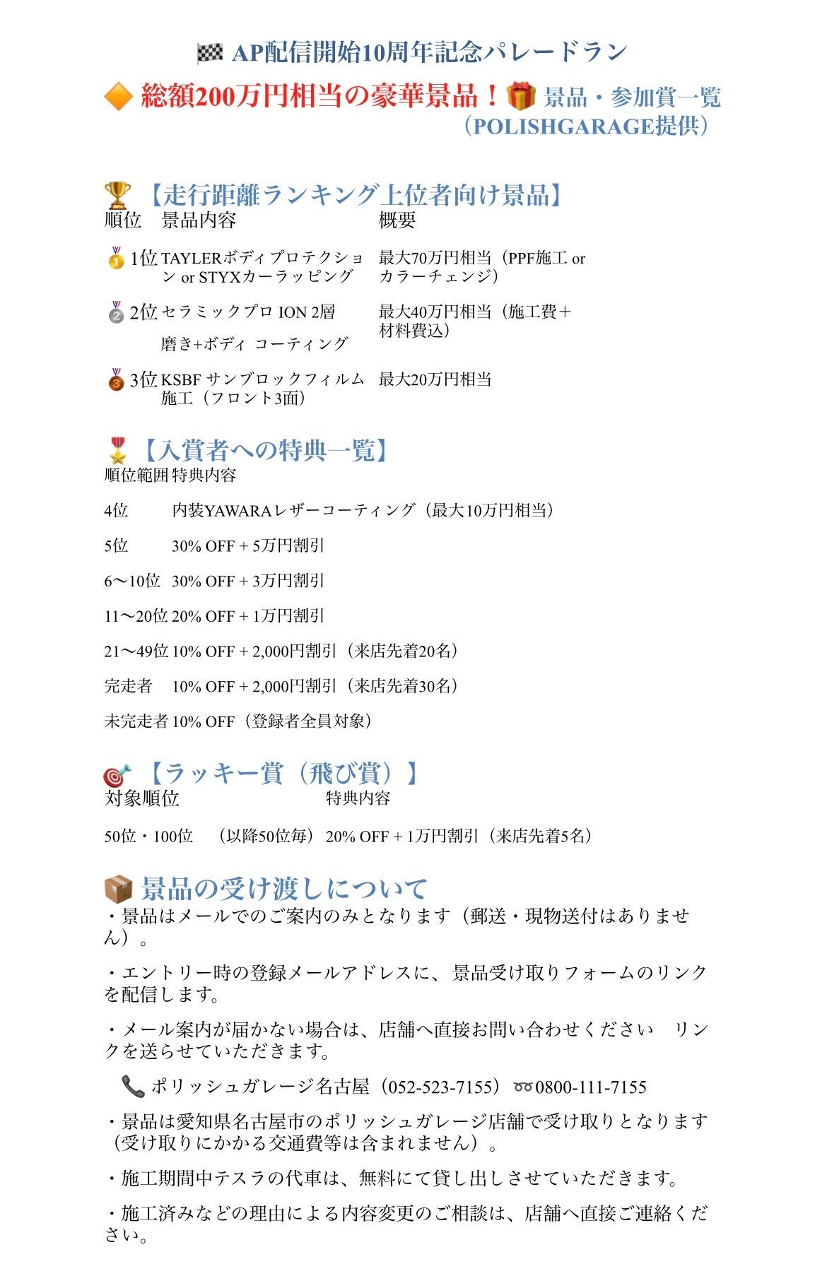 商品総額200万円 豪華景品発表!!テスラ AP(オートパイロット)運転補助機能の配信開始10周年記念イベント「みんなで地球1周分走ろう」イベント 主催:ポリッシュガレージ