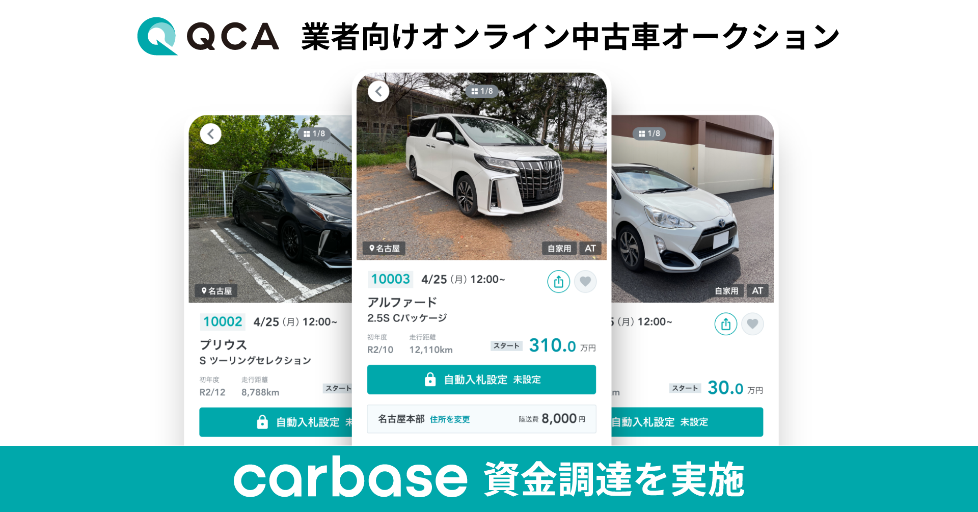 カーベース株式会社(本社:愛知県名古屋市、代表取締役:ハニーフ アブドウラ、以下:当社)は、QXLV(クオンタムリープベンチャーズ)、DRG Fundから資金調達を実施しましたことをお知らせいたします。同時に、2022年6月に事前登録を開始した業者向けオンライン中古車オークションサービス「QCA」の本登録を開始いたしました。