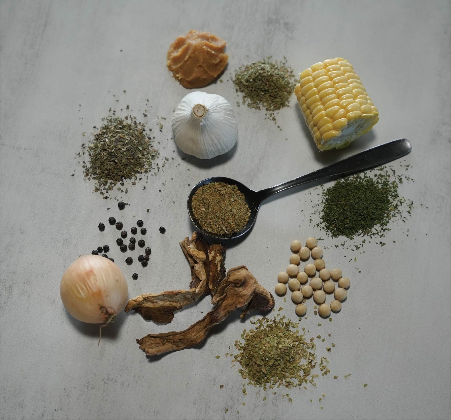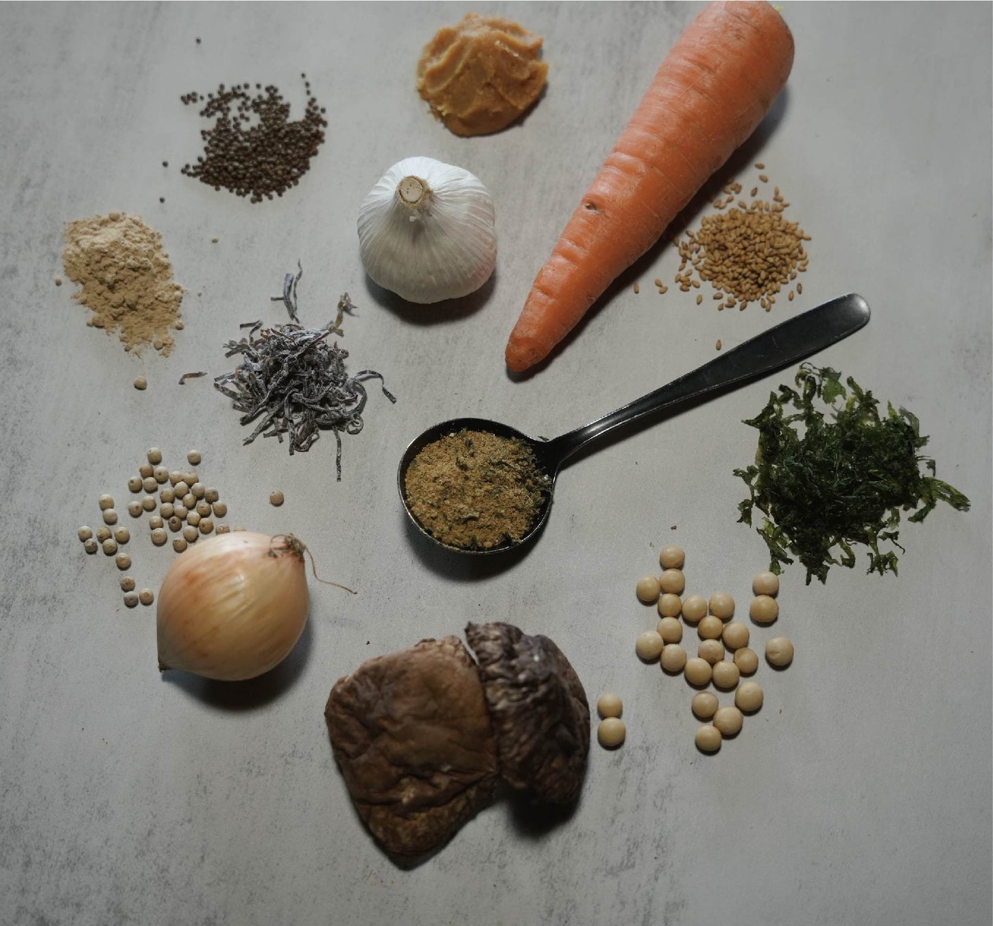 独自技術でコーヒーを使うことで匂いを抑えることに成功した納豆「SOYFFEE(ソイフィー)」とフリーズドライの味噌をベースに、9種類以上のハーブやスパイスなどの素材を香りと旨味がクセになるバランスで調合しました。より多くの方に食品の基本である「また食べたくなる味」を作り出すために、発酵食品マイスターとスパイス香辛料ソムリエの資格を持つ開発担当が味の設計を手掛けました。