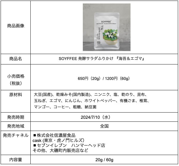 7⽉10⽇は納⾖の⽇!!“納豆と味噌をベース”にした野菜をもりもり食べられる新しい大豆発酵食品『SOYFFEE™ 発酵サラダふりかけ』が新発売。