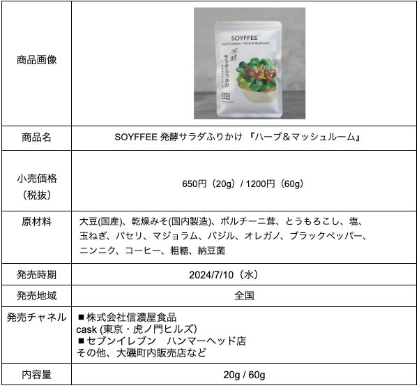 大豆発酵食品の製造・販売をする、株式会社 Shonan Soy Studio(本社:神奈川県中郡⼤磯町)は、“納豆と味噌をベース”にした野菜をもりもり食べられる『SOYFFEE(ソイフィー)発酵サラダふりかけ』を、7⽉10⽇ (納⾖の⽇)に新発売いたします。