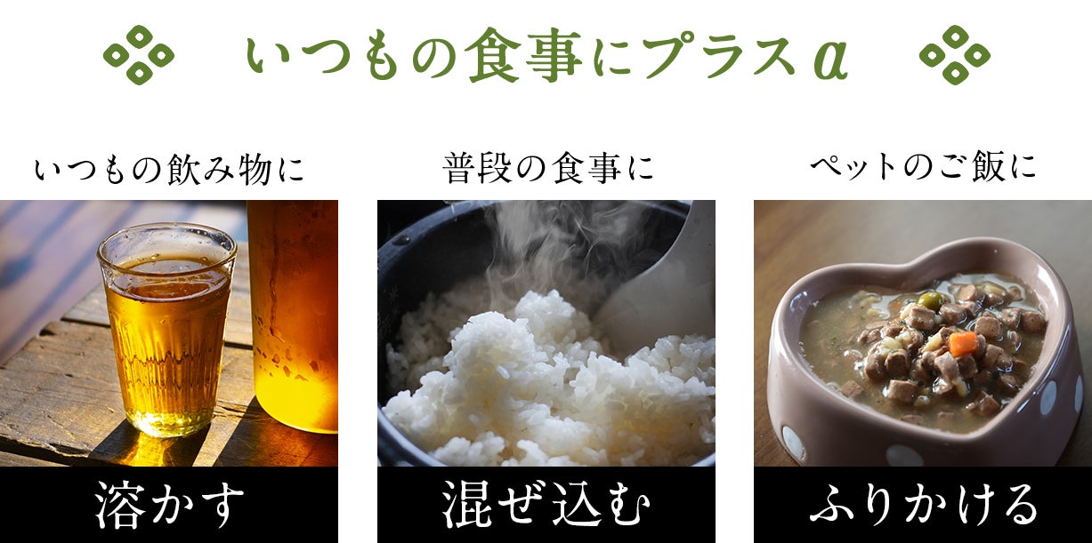 日本古来のSUGUKI乳酸菌SOY-1®のチカラで、子どもから大人そして愛するペットまで家族みんなの健康を支えたいという想いから、「余計なものは一切入れない」「混ぜるものの味を変えない」商品づくりにこだわり、