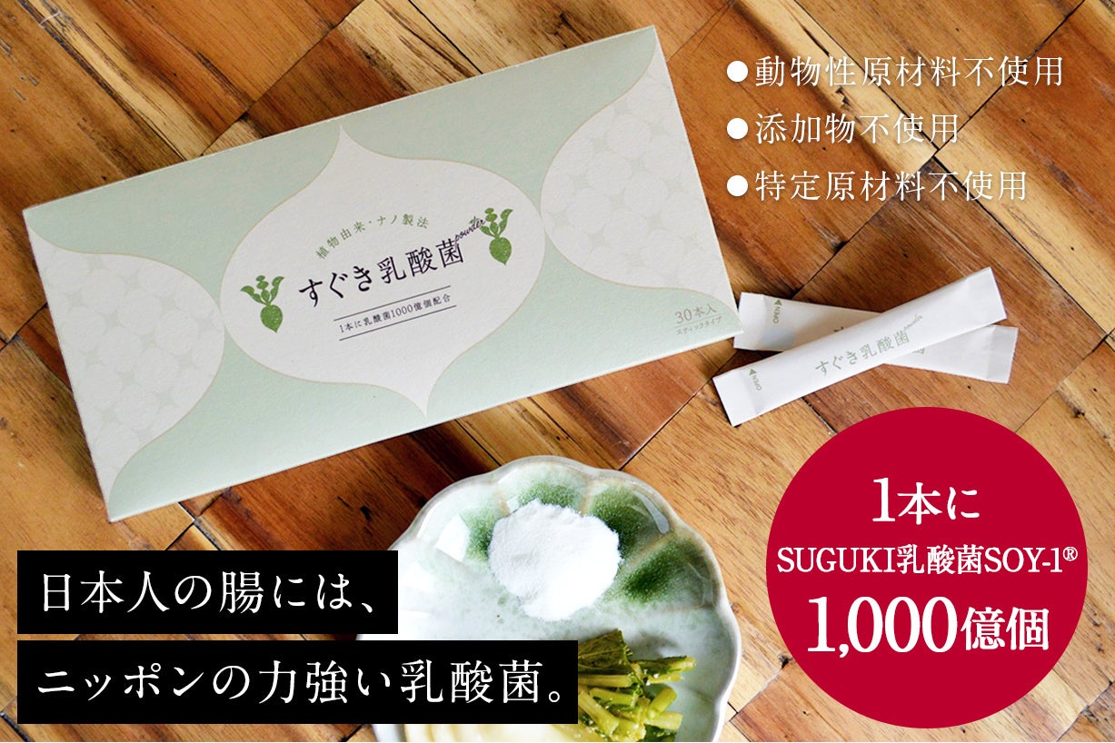 1包に1000億個配合!歴史的乳酸菌がサッと溶ける無風味パウダーになって誕生。現代人の「腸」に今こそ届けたい【すぐき乳酸菌パウダー】2024年3月22日(金)からMakuakeにて先行予約販売開始。