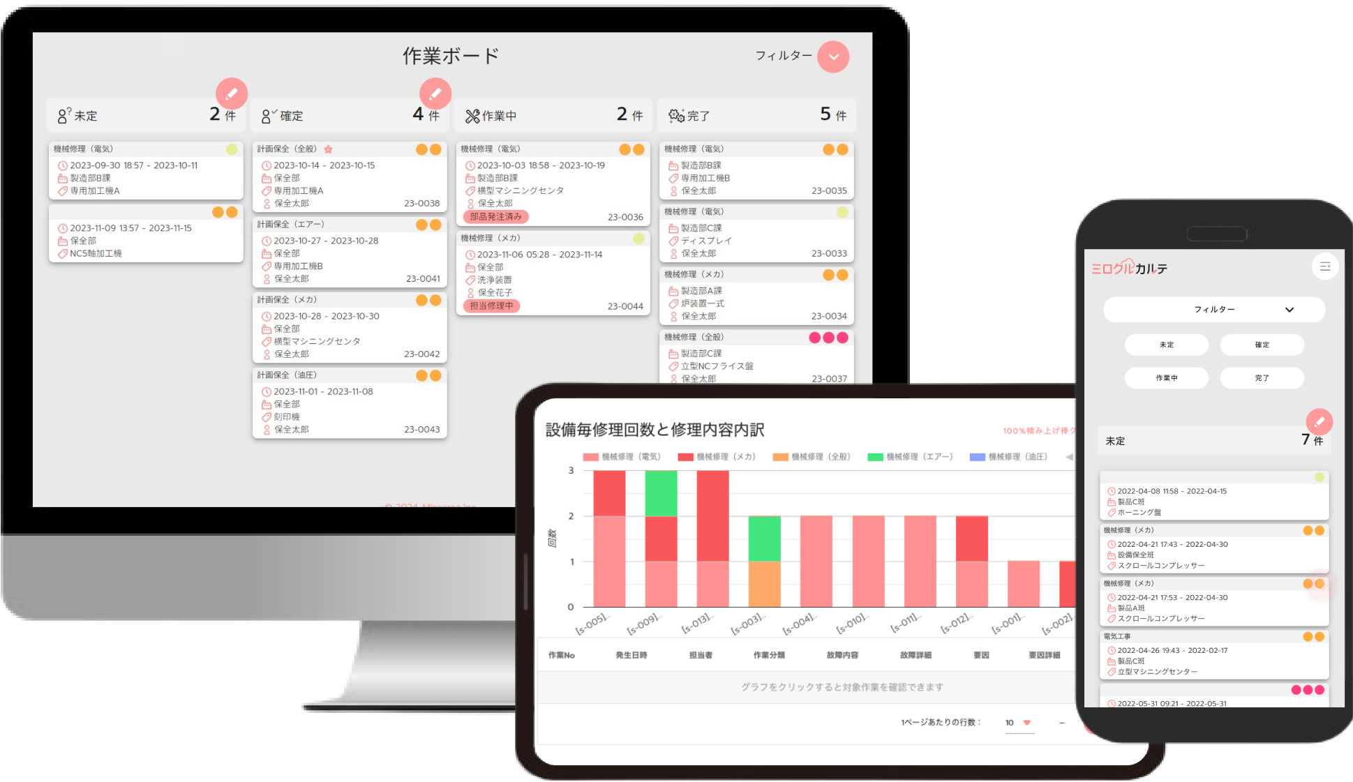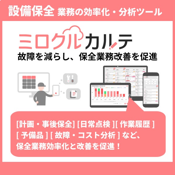 「ミロクルカルテ」は、製造業に特化したクラウド型設備保全管理ツールです。現場の声を反映して開発され、以下の特徴があります。