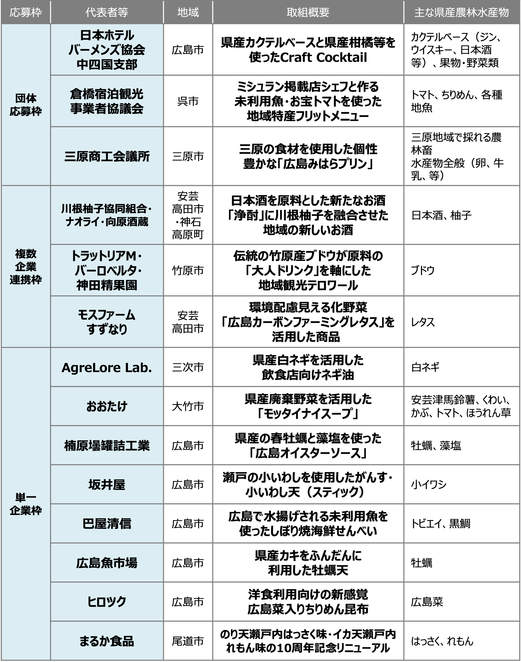 HIROSHIMA FOOD HEROES CHALLENGE WAVE1 採択者