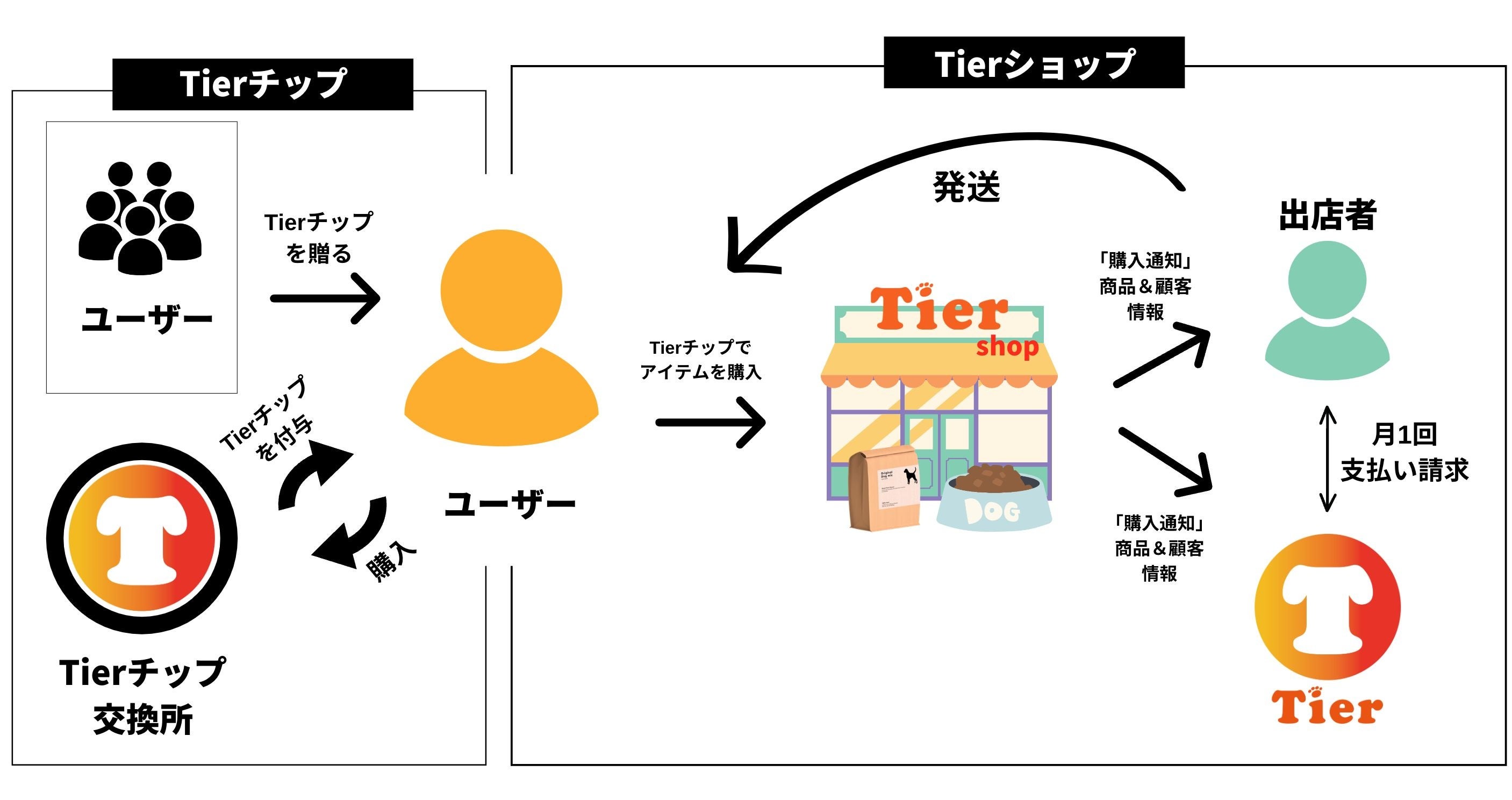 ※1コンテンツの視聴者は、TierからTierチップを購入し、コンテンツの配信者を応援(=投げ銭機能)することができます。コンテンツの配信者は、配信をすることによりTierからTierチップの還元を受けることができます。