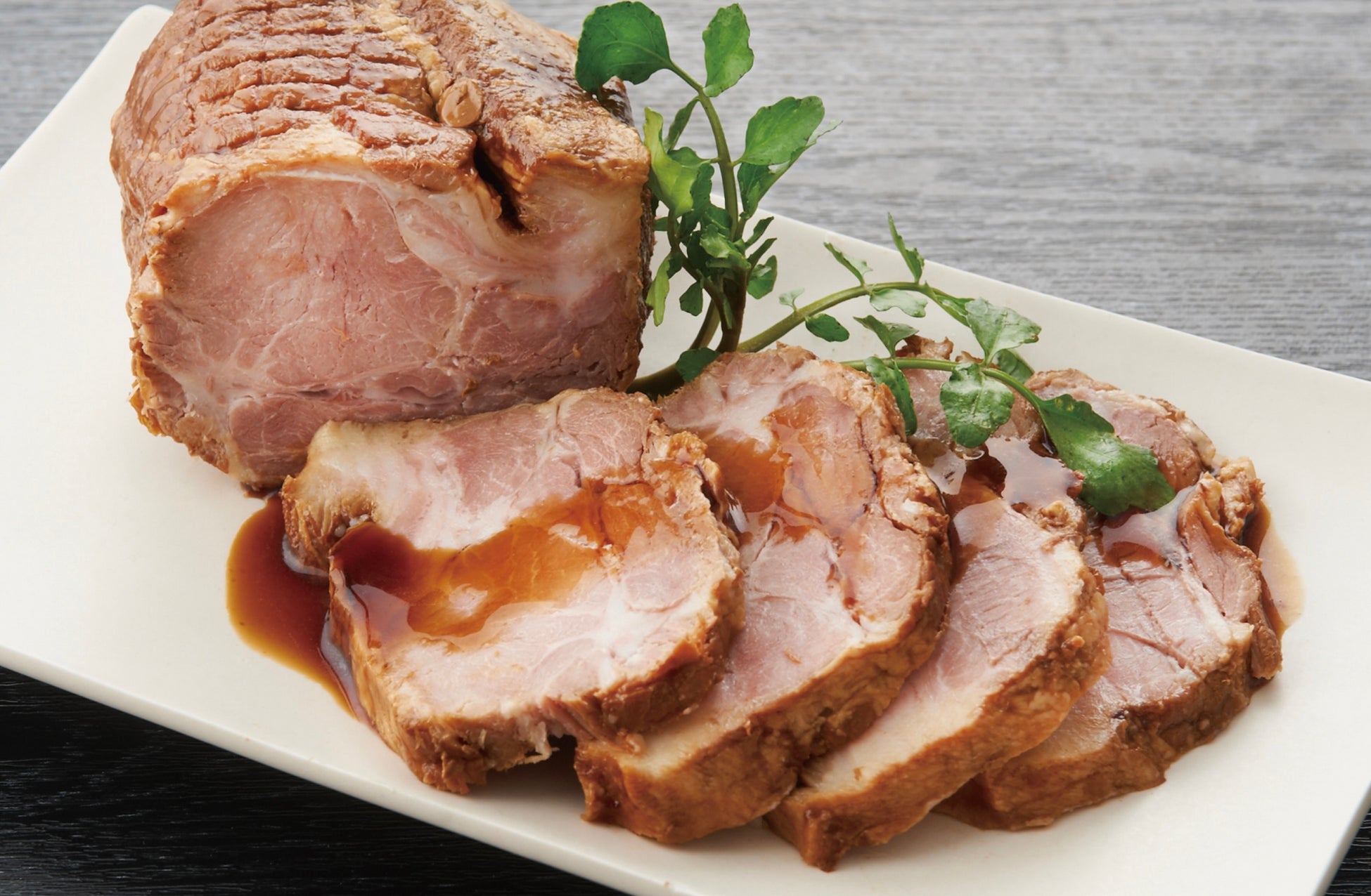 葉山にある自社工場・葉山プロセスセンターで、毎日コトコト煮てつくる自家製おつまみ煮豚。豚肩ロース肉をじっくり煮込み、柔らかく仕上げています。好みの厚さにスライスしてそのままおつまみに、またラーメンや炒飯にもオススメです。逗子市ふるさと納税返礼品としても、全国に発送中。この煮豚をカツにした「スズキヤ自家製煮豚カツ丼」も人気です。