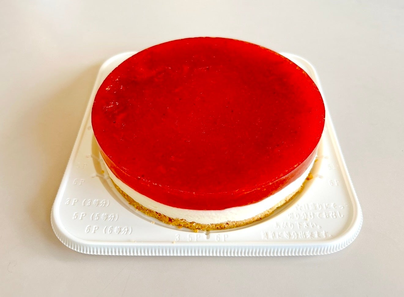 葛ゼリーにミガキイチゴの甘さと程よい酸味を閉じ込め、レアチーズケーキと組み合わせたケーキです。