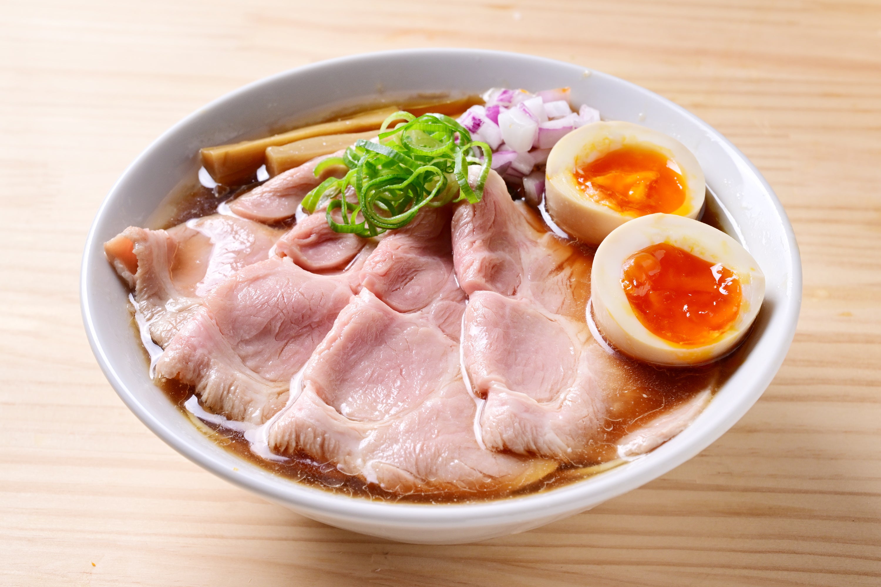 国産鶏の芳醇な香りとコクのある深い出汁、老舗蔵元の再仕込み熟成醤油の豊かな風味。そこにしじみ、帆立、浅利などの貝のエキスを追加し旨みが強い一杯に仕上げました。途中、卓上に設置された生玉子、海苔、調味料で様々な味変をお楽しみ頂けます!!