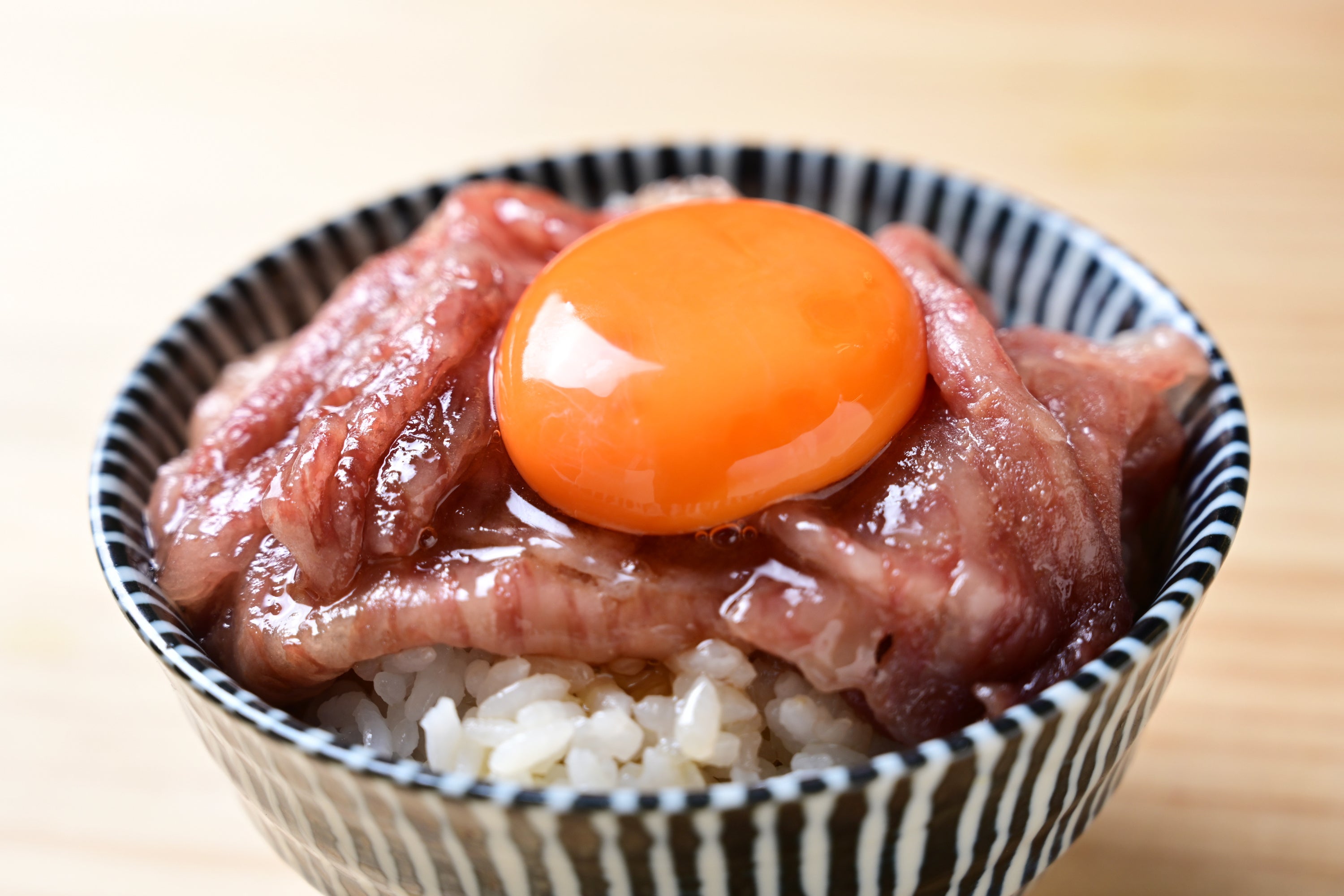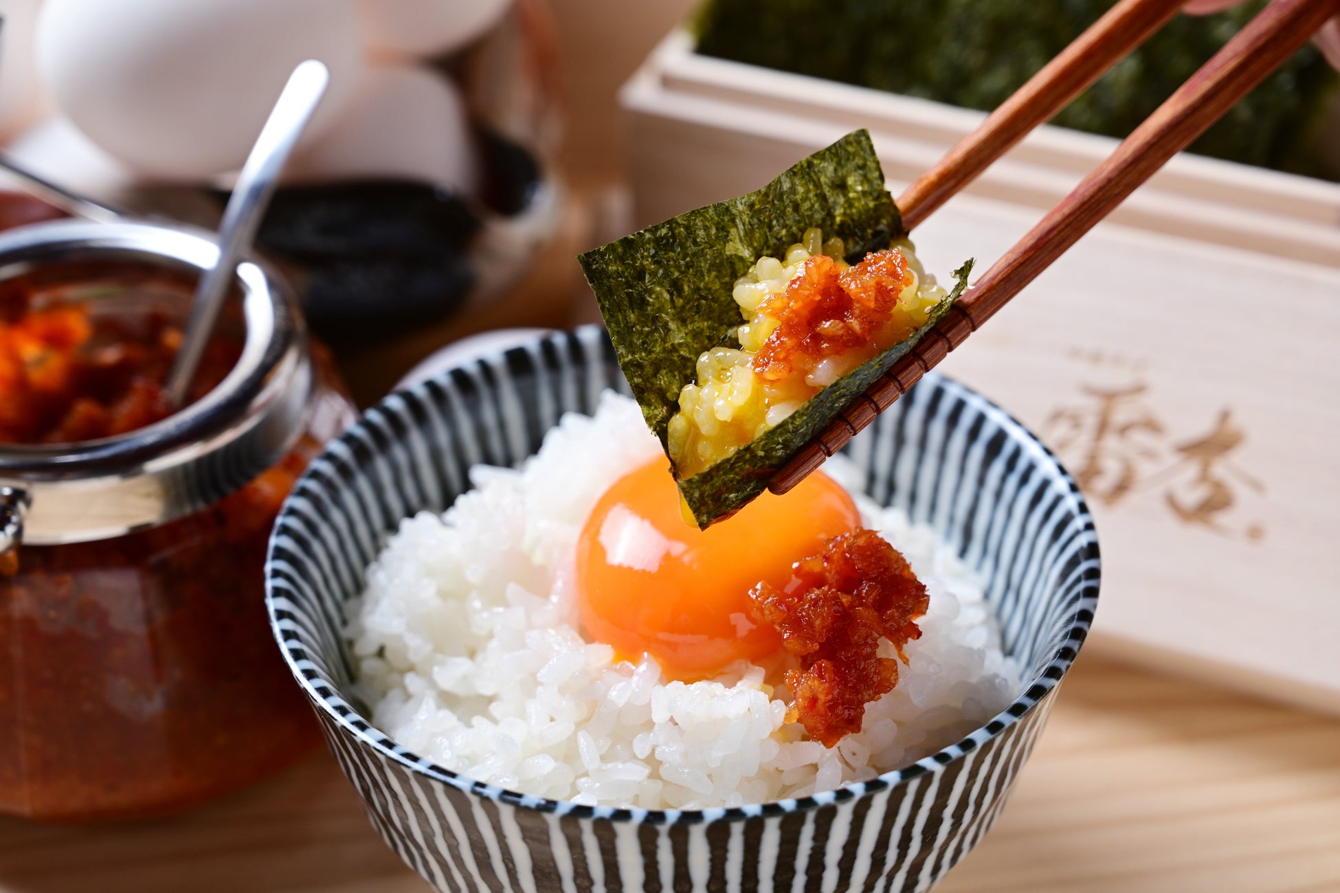 つや姫の銀しゃりとで贅沢なたまごかけご飯に。卓上生姜醬を乗せるのが雷杏風。炙りロースご飯に乗せてすき焼き風ご飯としてもお召し上がり頂けます!!