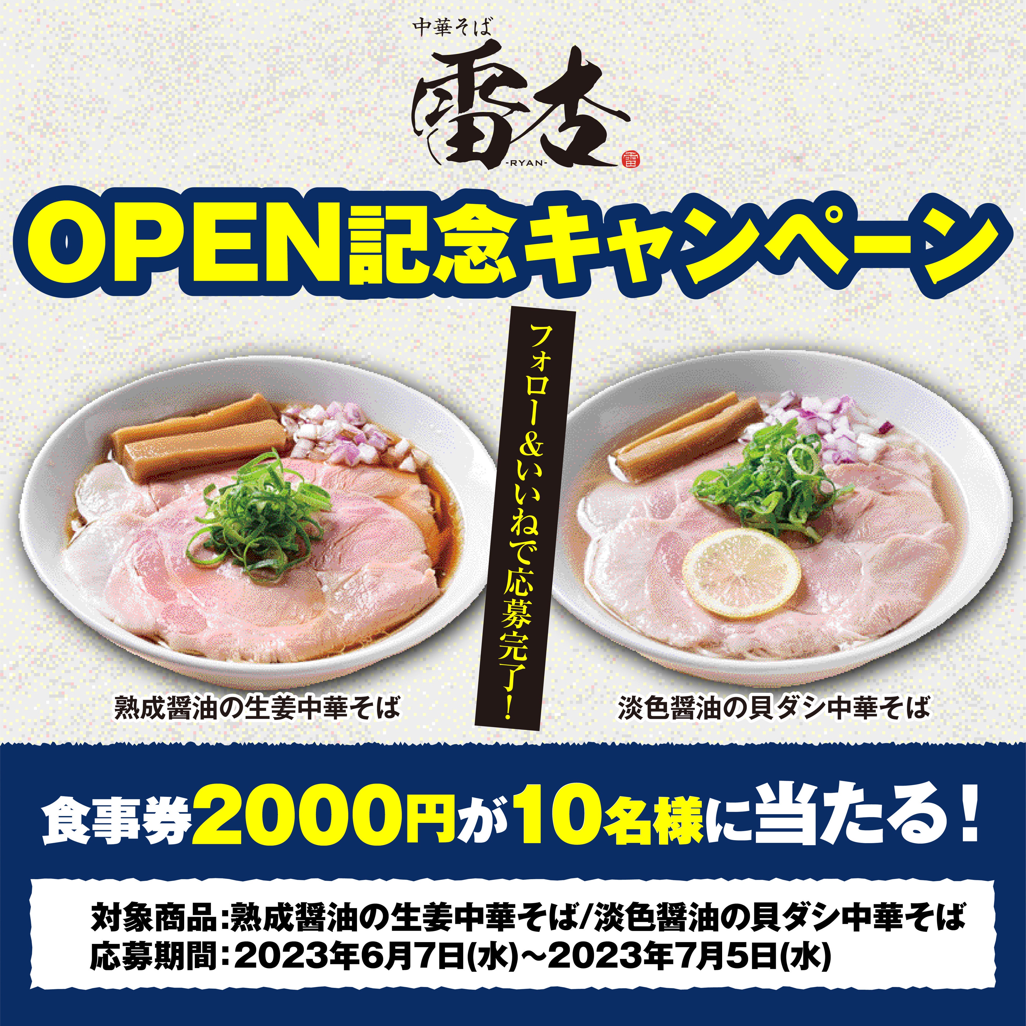 店舗名:中華そば 雷杏 -RYAN-(プロデュース店)