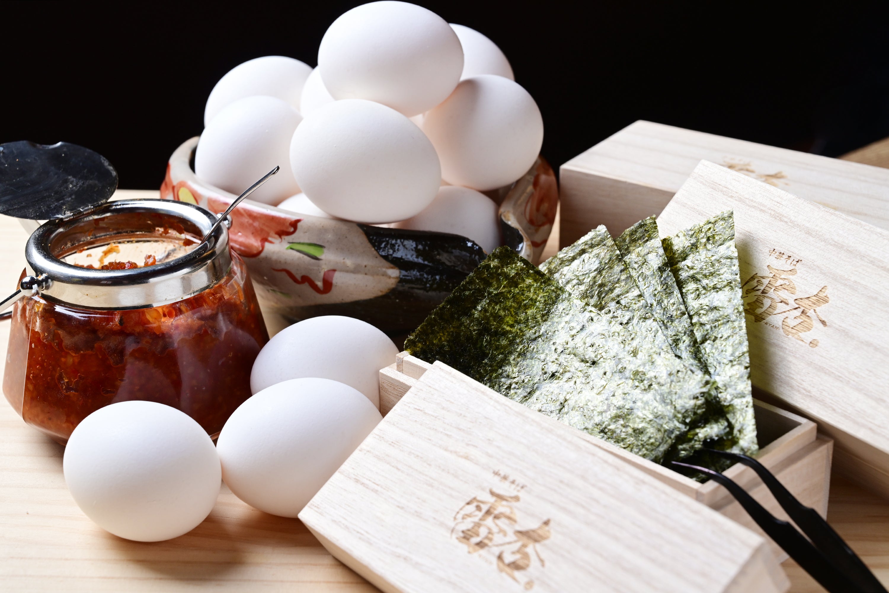 また、卓上には生玉子、海苔、自家製の生姜醬が使い放題!!中華そばや銀しゃりをカスタマイズして様々な食べ方でお楽しみ頂けます。