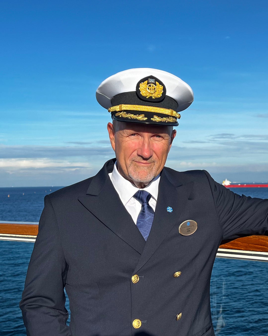 キム・ロジャー・カールソンは、35年以上にわたる海事業界での経験を持ち、フェリーからクルーズ船まで幅広く指揮。過去20年間はノルウェージャンクルーズラインで、米国、ヨーロッパ、アジア、中南米など異なる大陸を巡る様々な船の船長を務め、70以上の国籍のクルーとの乗船経験を持つ。最近では、ノルウェージャン ビバの就航を指揮。新しい環境に素早く順応する能力を持ち、前向きな思考と積極的な自己研鑽によって、新たな課題を受け入れ、迅速に知識を身に付け学ぶことができる。また、リーダーシップとチームプレーヤー双方の経験があり、幅広い層のお客さまに最高水準のサービスを提供するための意思決定を行う。米国フロリダ在住。