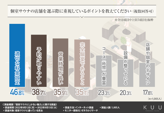 では、個室サウナーさんはどのようなポイントを重視して店舗選びをしているのでしょうか。