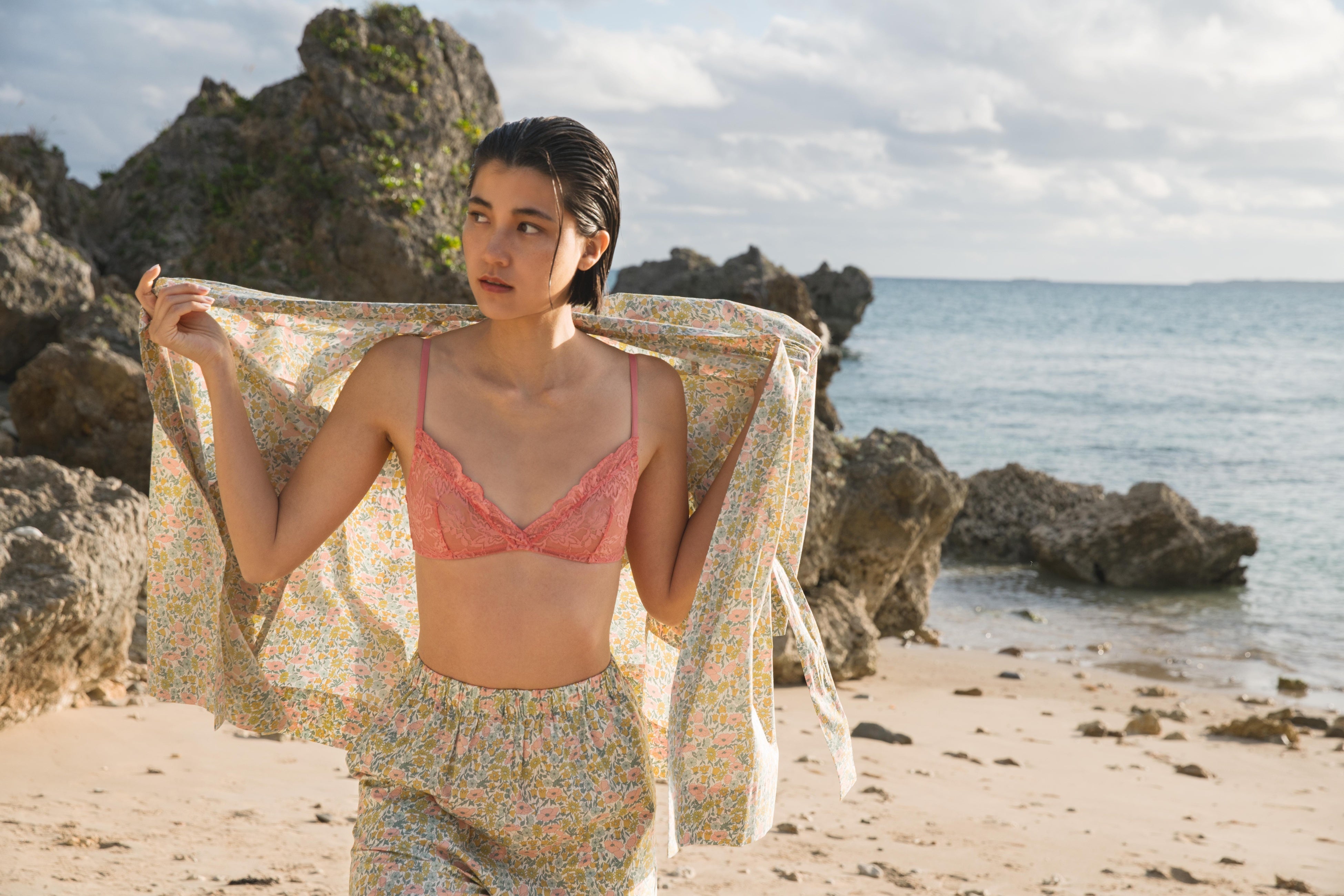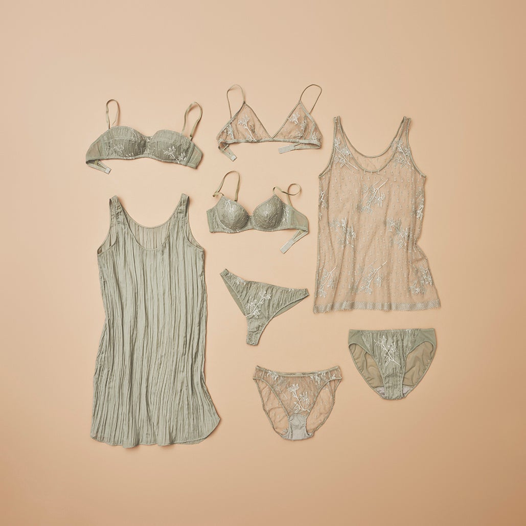 3/4 Cup bra ¥14,300〜/ Non wire bra ¥13,750 / Non wire non patted bra ¥12,100 / Standard ¥8,800 / Hip hung ¥8,800 / Tanga ¥8,250 /Slip ¥25,300/ Camisole ¥22,000 / Body suits ¥23,100