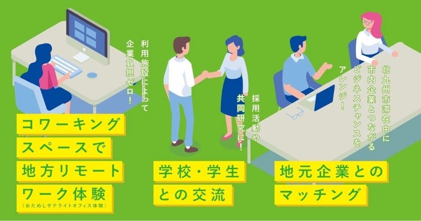 北九州市は、令和4年度に引き続き、地方での拠点設置を検討する首都圏等の企業(北九州市内に拠点を有していない企業)を対象に、「交通費」「宿泊費」「ワークスペース利用料」を補助する「おためしサテライトオフィス推進事業」を実施中です。