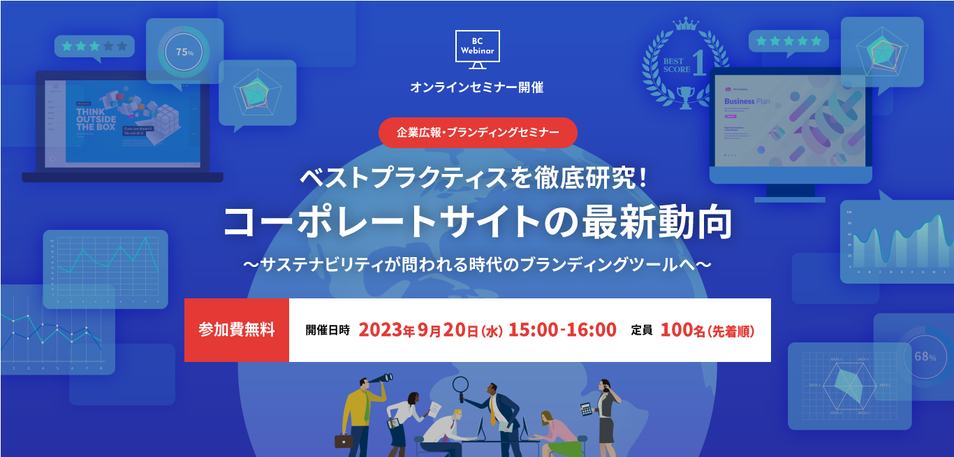 ブレーンセンターは独自のヒューリスティック調査を通じて、多くのコーポレートサイトを評価・分析してきました。今回のウェビナーでは、その調査結果をベースとして最新のトレンドをご紹介します。また、「ブランディング」「IR」「サステナビリティ・CSR」の各テーマでランキング上位となった優良事例のポイントを徹底解説します。
