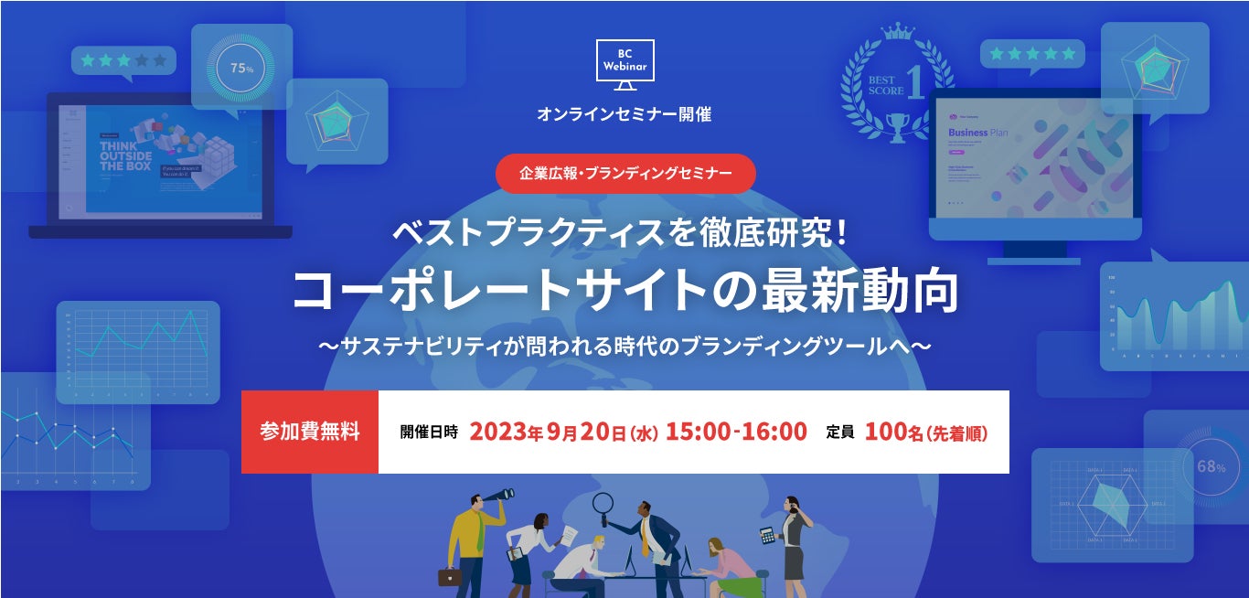 プログラム | ・調査事例から読み解くコーポレートサイトの最新トレンド ・優良事例解説(ブランディング/IR/サステナビリティの観点から) ・質疑応答 |