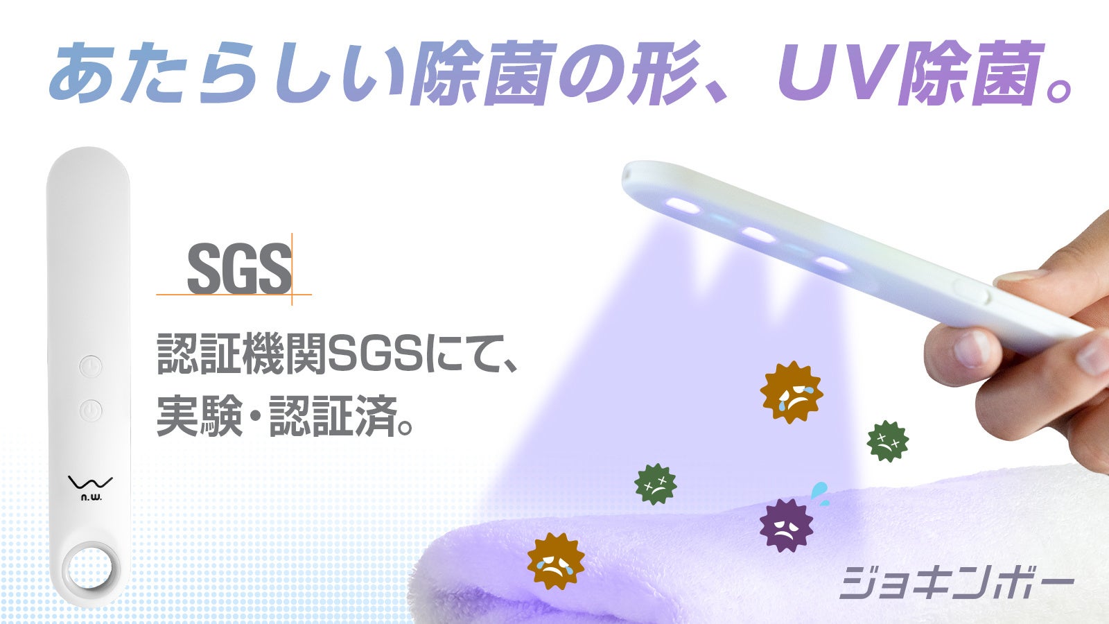感染拡大以降、マスクが足りなくなり、そして消毒液が足りなくなり、、、必要なものが必要な場所に無いという「深刻な課題」が生まれました。その課題の1つ、アルコール除菌液の不足に対応する形で今回世に出た、アルコールを消費しないあたらしいUVC除菌具「ジョキンボー」。