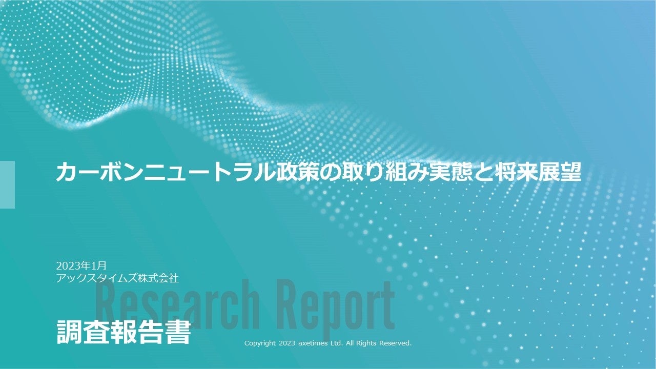 ビジネス解像度を高めるリサーチ情報サービスを展開するアックスタイムズ株式会社(所在地:大阪府大阪市中央区、代表取締役:橋本規宏)は、調査報告書「カーボンニュートラル政策の取り組み実態と将来展望」について、米国版・欧州版を2023年1月10日、中国版・インド版を2023年1月26日にリリースしたことをお知らせします。