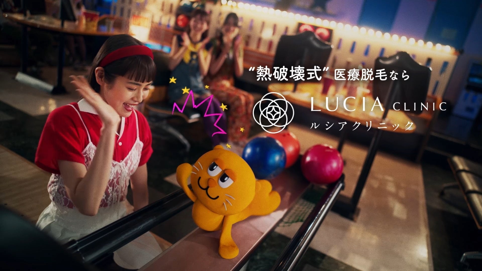 そんなルシアクリニックが展開する新WEB CMの舞台は、施術室ではなくボウリング場。ボウリング球となった「ルシアシカ」が、毛に見立てたボウリングピンに勢いよく飛び込み、豪快に弾き倒すことで、毛根へダイレクトにアプローチする“熱破壊式”脱毛を表現しました。視覚的に分かりやすく、レーザー照射によって発毛組織が破壊され、脱毛効果を得られる仕組みを伝えています。