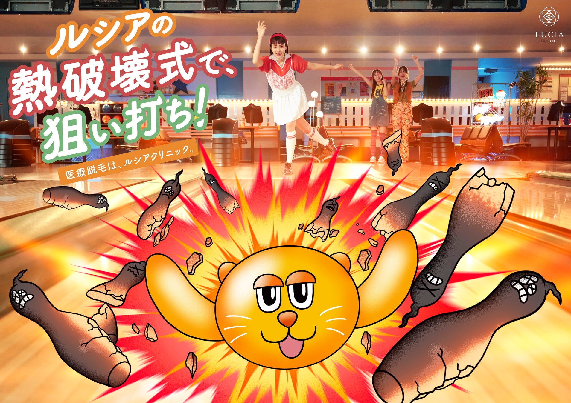 【医療脱毛症例173万件を誇るルシアクリニックの新CM】マスコットキャラクター『ルシアシカ』がボウリング球に変身!?根強い毛根ピンをなぎ倒す白熱シーンにご注目!