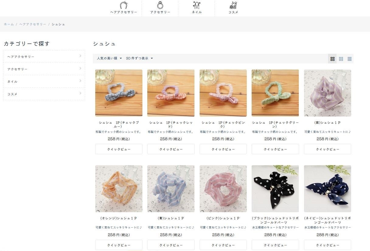取り扱う商品はヘアアクセサリー、アクセサリー、ネイル、コスメとオシャレで可愛らしい商品を幅広く集めております。