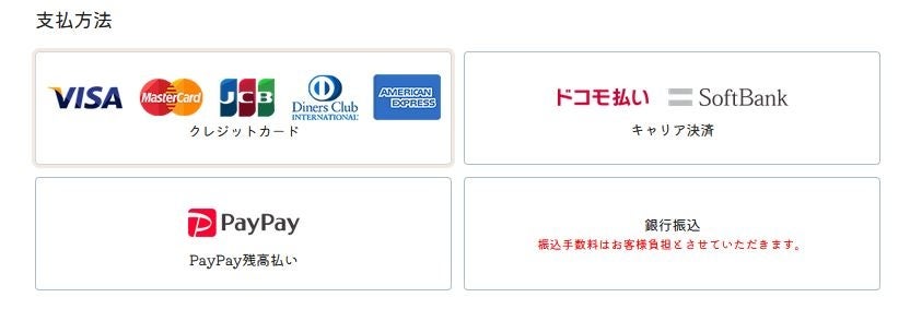 PAYPAY残高払い・銀行振込の4つがご利用可能です。