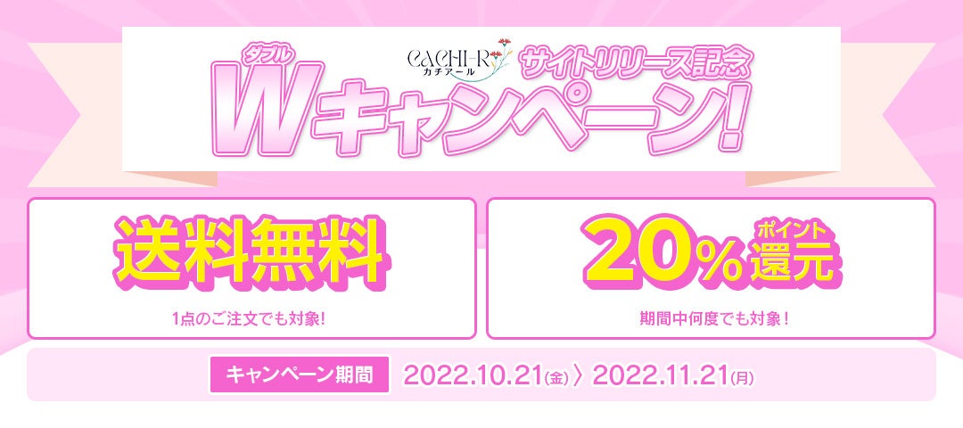 10月21日(金)から11月20日(日)までの1ヶ月間、新WキャンペーンをCACHI-R(カチアール)公式サイト内にて開催中!!