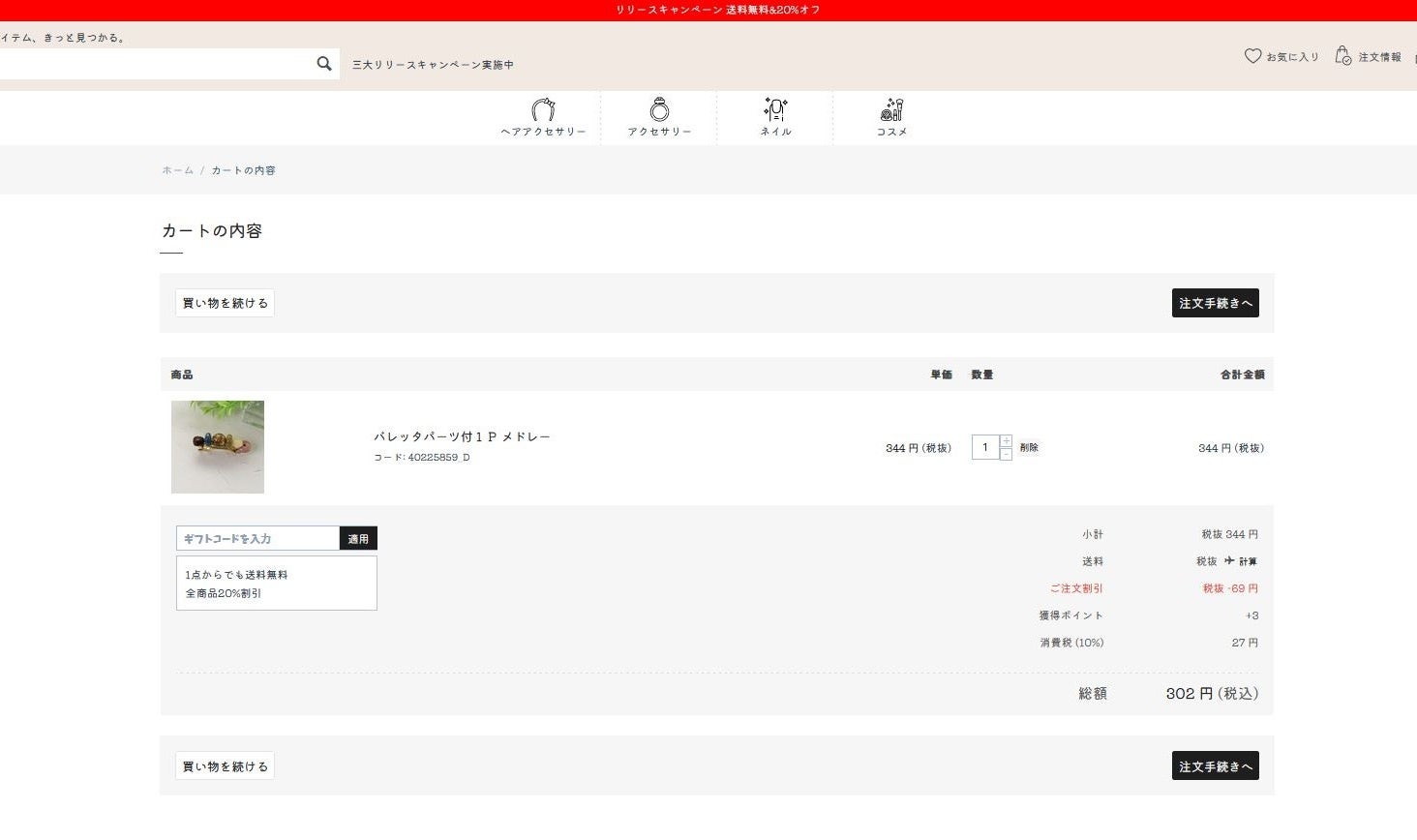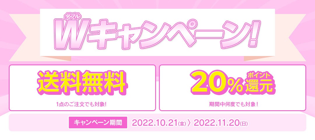 1点からでも送料無料、購入金額の20%ポイント還元などお得なWキャンペーンも開催中!