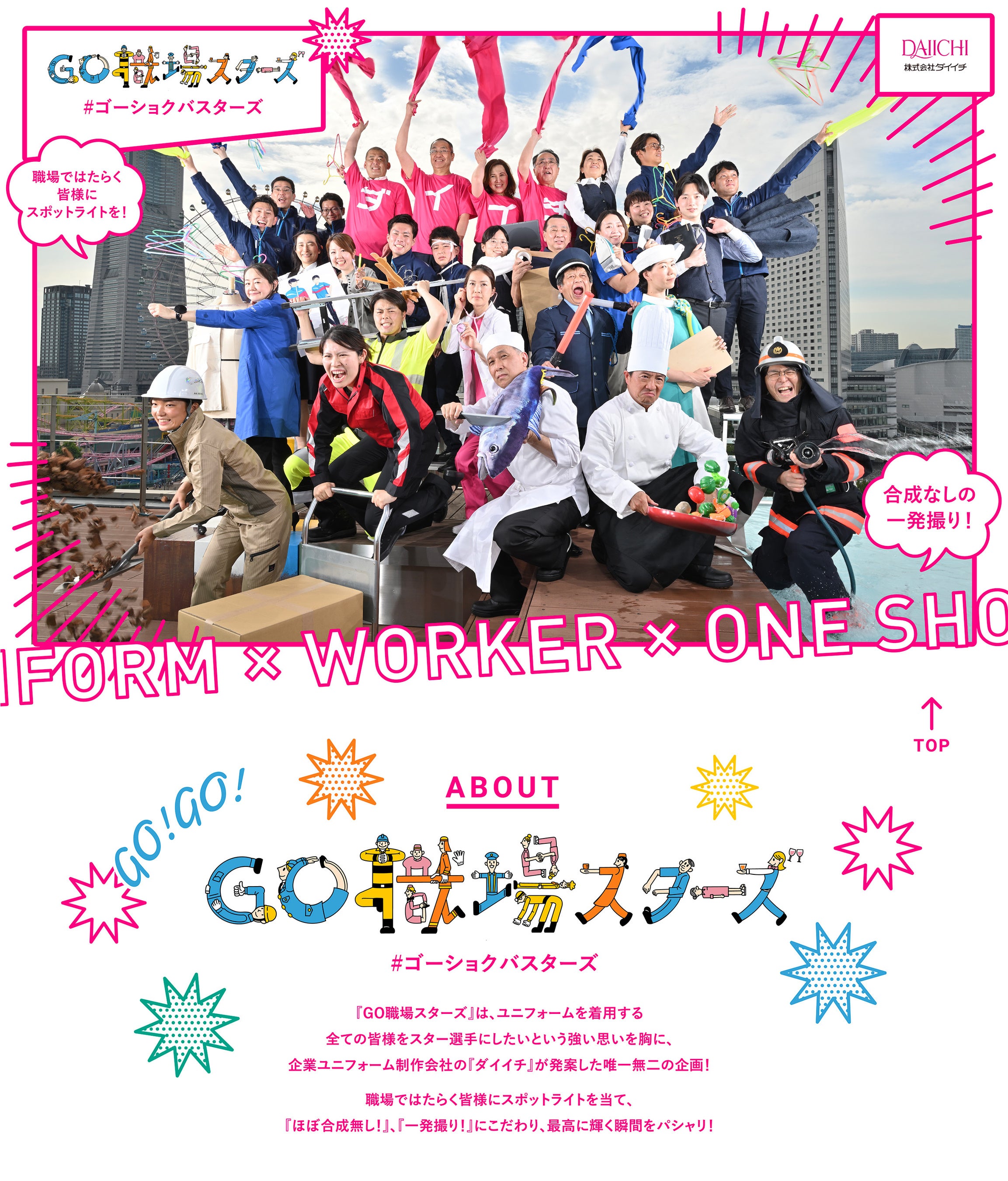 企業ユニフォームの制作を手掛ける【ダイイチ】が発案!はたらくって楽しい!はたらくって美しい!はたらくってカッコいい!職場のスターたちの劇的に躍動する瞬間を『ほぼ合成無し!』『一発撮り』でお届け!