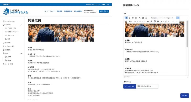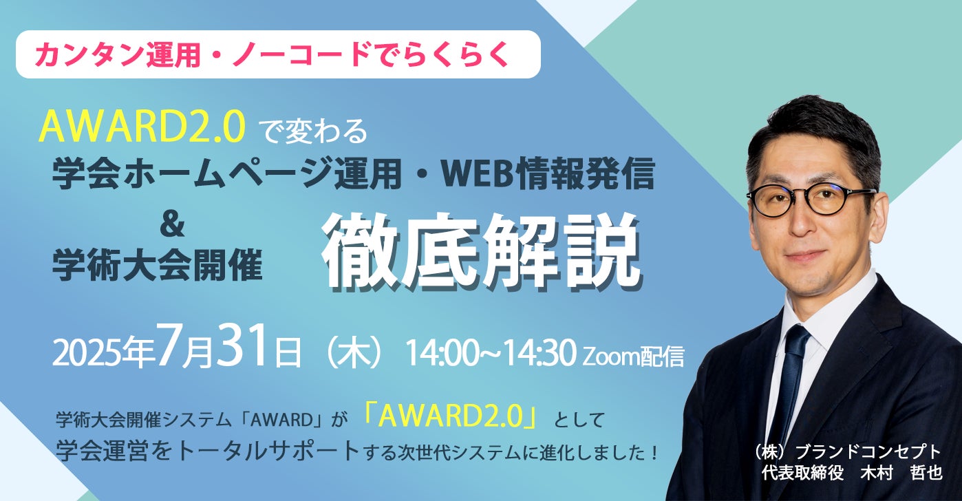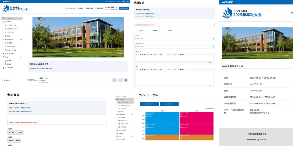 学術大会開催システム「AWARD」が「AWARD2.0」として学会運営をトータルサポートする次世代システムに進化しました!学術大会開催、会員管理、ホームページ制作、学会事務局機能のトータルシステムです