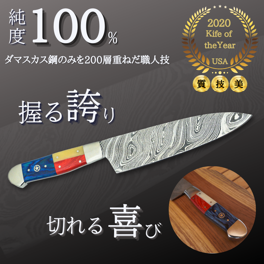 職人技、品質、美しさに基づいて選ばれる賞『Knife of the Year in USA』に、何百もの刃の中から満場一致で受賞した彼らが、新た打ち出す200層ダマスカス包丁、確かな技術をお見逃しなく。