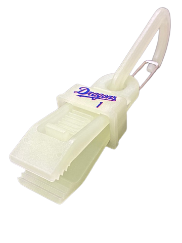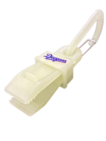 物を挟んで固定するためのストッパー部分にドラゴンズのロゴや好きな推しの選手の背番号が入っている。
