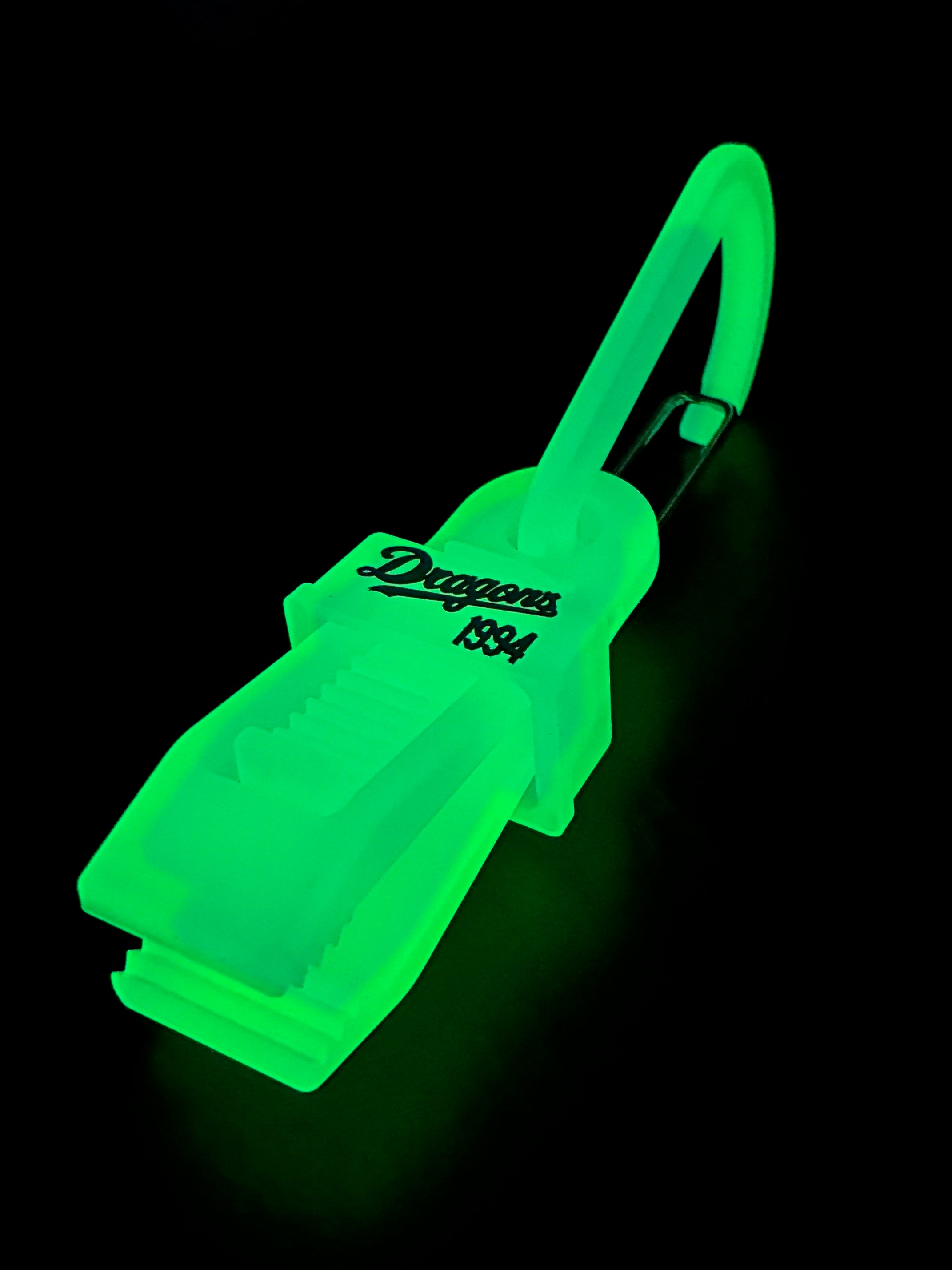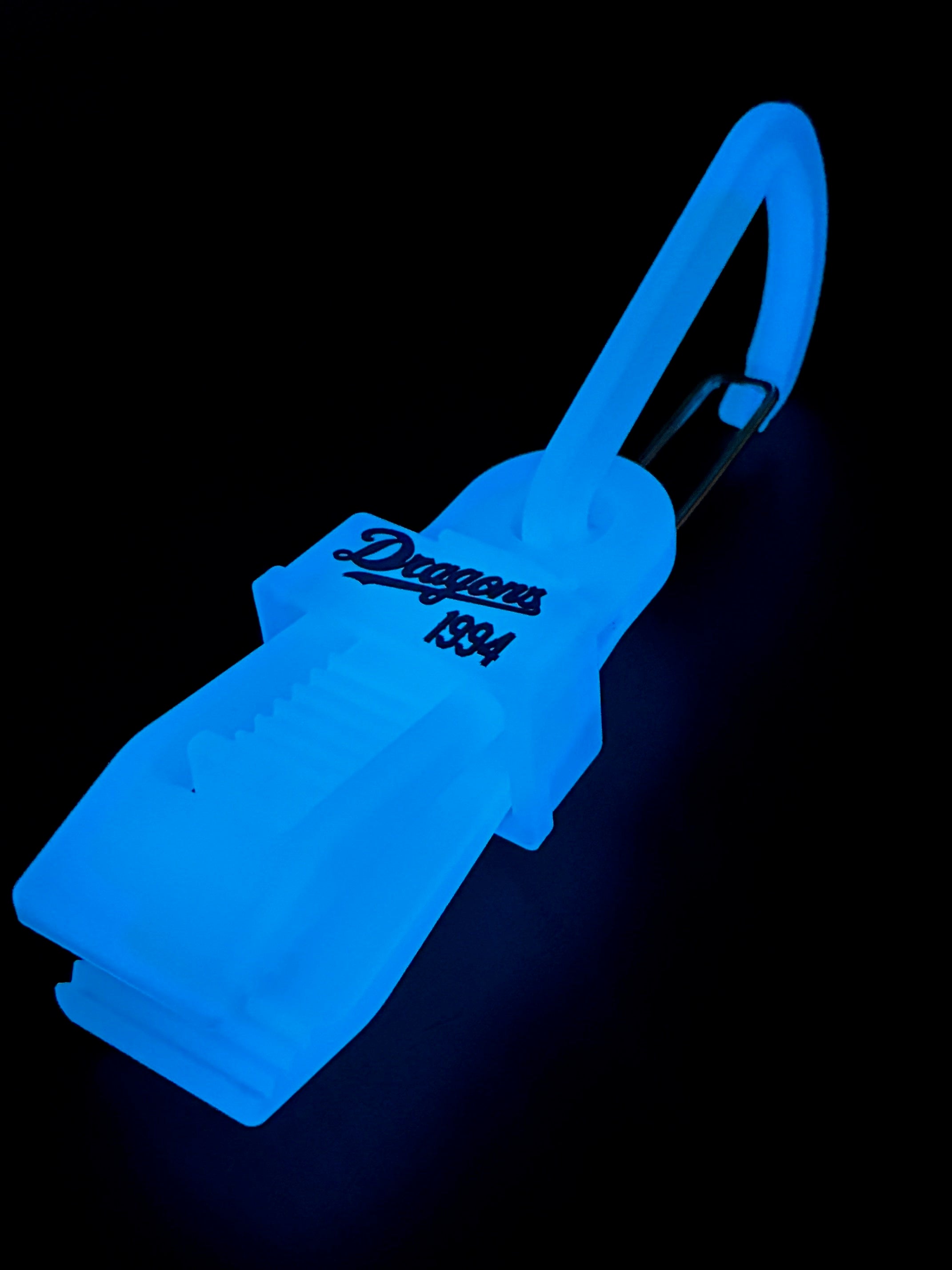 暗闇でドラゴンズブルーにさりげなく光るウロボロスクリップ朧(おぼろ)