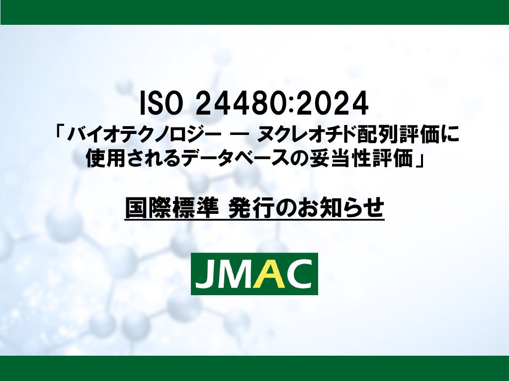 このたび、特定非営利活動法人バイオ計測技術コンソーシアム(以下JMAC)は、当コンソーシアムが中心となって開発した国際標準、ISO 24480:2024 「バイオテクノロジー — ヌクレオチド配列評価に使用されるデータベースの妥当性評価」が出版されたことをお知らせします。