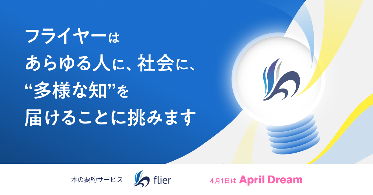 10分の要約から、一生もののヒラメキを!累計会員130万人超が利用する本の要約サービス「flier」は日本中のあらゆる人に、社会に、“多様な知”を届けることに挑みます